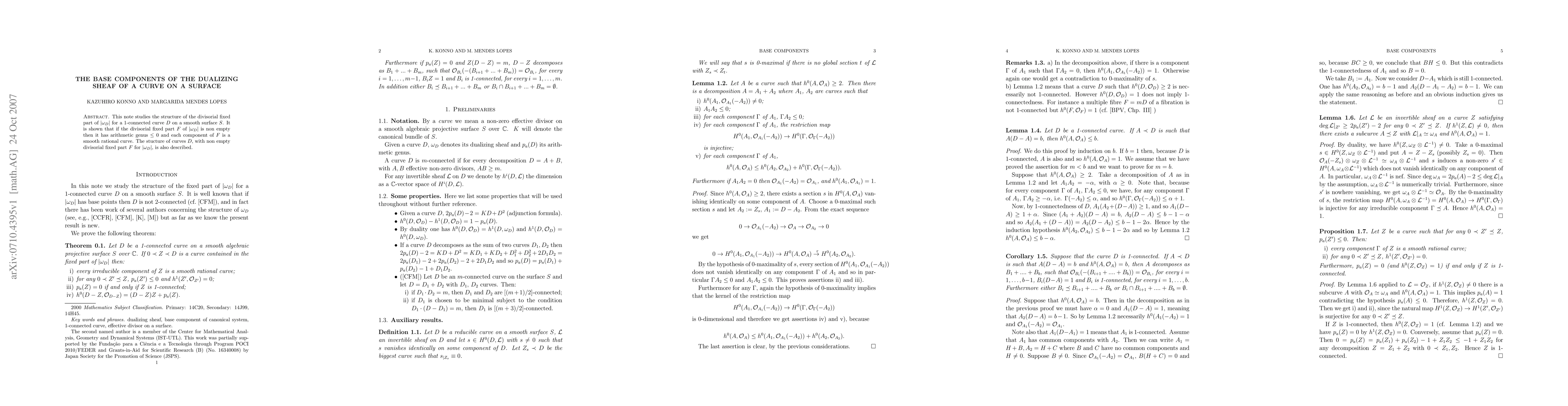 This note studies the structure of the divisorial fixed part of the dualizing sheaf of a 1-connected curve D on a smooth surface S. It is shown that if the divisorial fixed part F of the dualizing sheaf is non empty then it has arithmetic genus<1 and each component of F is a smooth rational curve.