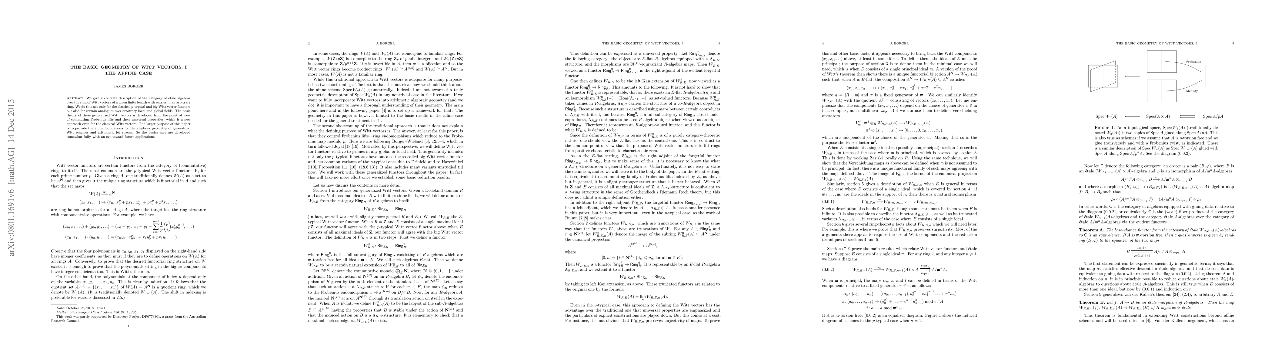 We give a concrete description of the category of etale algebras over the ring of Witt vectors of a given finite length with entries in an arbitrary ring. We do this not only for the classical p-typical and big Witt vector functors but also for variants of these functors which are in a certain sense their analogues over arbitrary local and global fields. The basic theory of these generalized Witt vectors is developed from the point of view of commuting Frobenius lifts and their universal properties, which is a new approach even for the classical Witt vectors. The larger purpose of this paper is to provide the affine foundations for the algebraic geometry of generalized Witt schemes and arithmetic jet spaces. So the basics here are developed somewhat fully, with an eye toward future applications.
