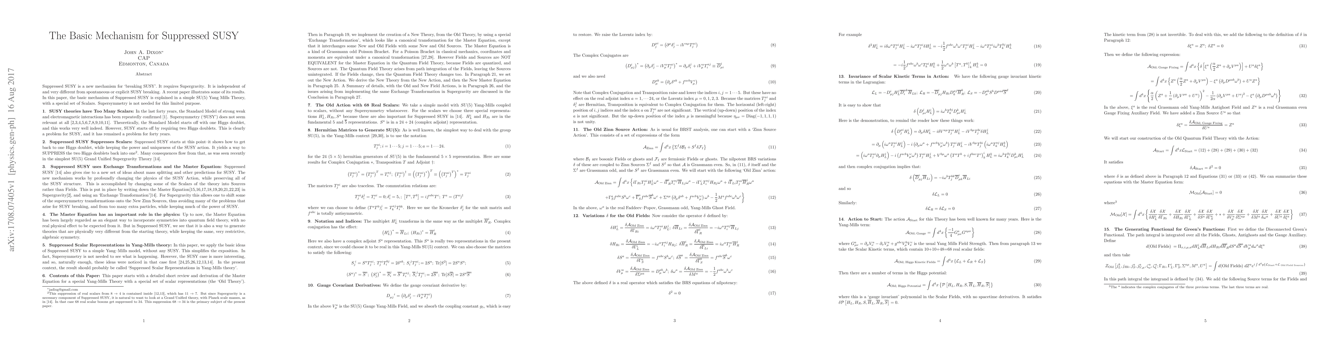 The paper introduces a new method for SUSY breaking, formulates a Master Equation for the action, and demonstrates an Exchange Transformation that reduces the scalar representations while maintaining the action's structure.
