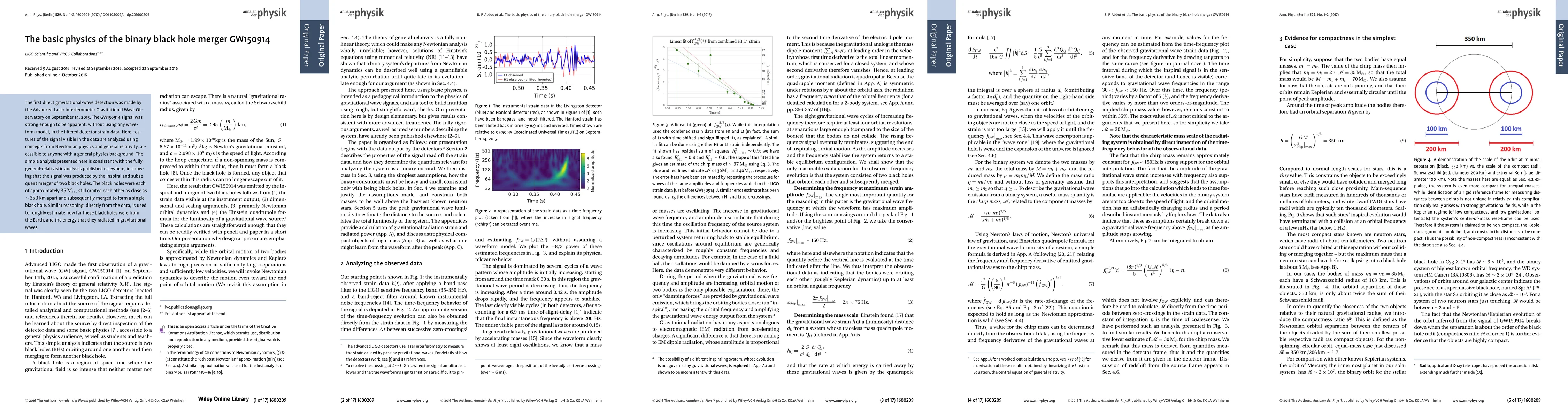 The paper analyzes the first direct gravitational-wave detection, GW150914, using Newtonian physics and general relativity to confirm that it was produced by the merger of two 35 Msun black holes. The analysis estimates the distance of the black holes from Earth and their radiated energy in gravitational waves.