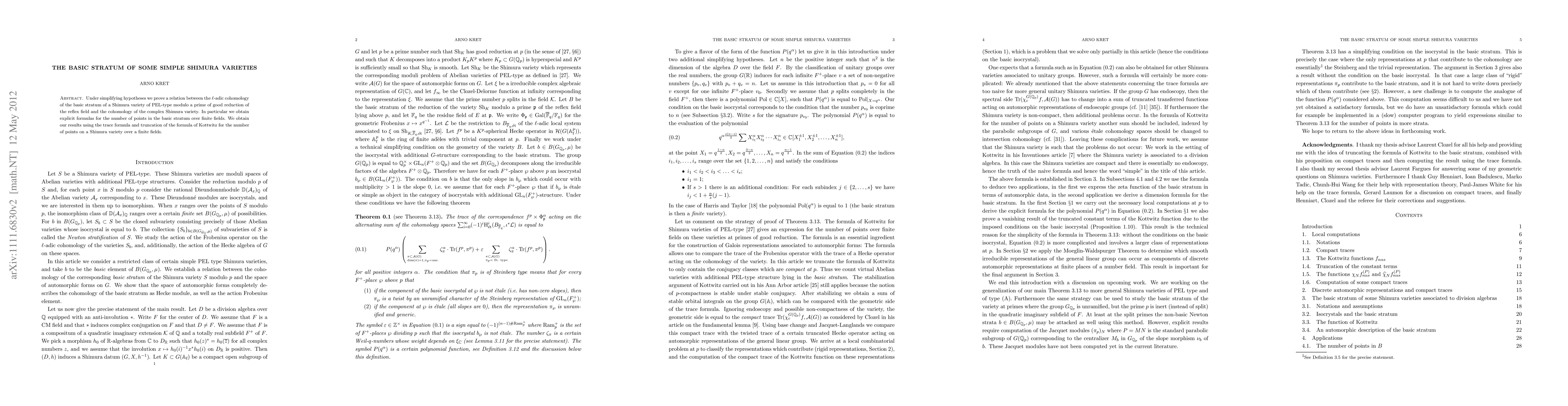 Under simplifying hypotheses we prove a relation between the l-adic cohomology of the basic stratum of a Shimura variety of PEL-type modulo a prime of good reduction of the reflex field and the cohomology of the complex Shimura variety. In particular we obtain explicit formulas for the number of points in the basic stratum over finite fields. We obtain our results using the trace formula and truncation of the formula of Kottwitz for the number of points on a Shimura variety over a finite fields.