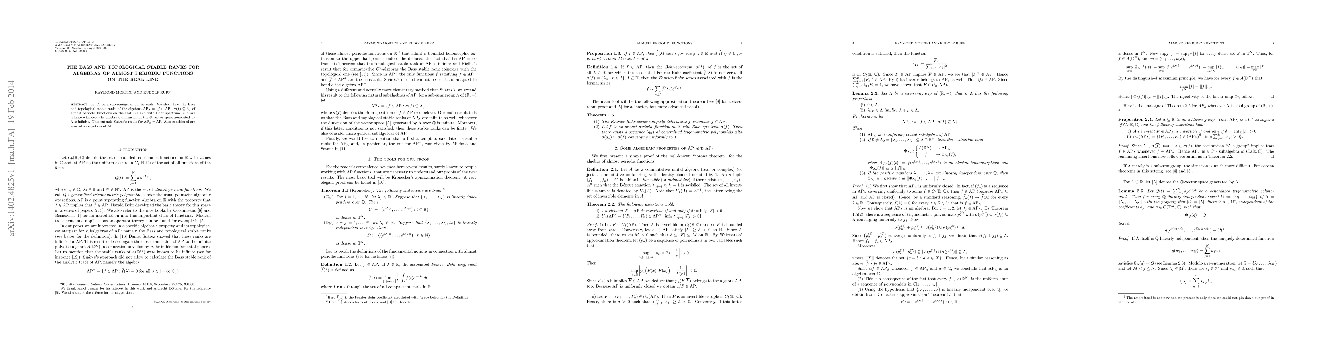 Let $\Lambda$ be a sub-semigroup of the reals. We show that the Bass and topological stable ranks of the algebras ${\rm AP}_\Lambda=\{f\in {\rm AP}: \sigma(f)\subseteq \Lambda\}$ of almost periodic functions on the real line and with Bohr spectrum in $\Lambda$ are infinite whenever the algebraic dimension of the $\mathbb Q$-vector space generated by $\Lambda$ is infinite. This extends Su\'arez's result for ${\rm AP}_\mathbb R={\rm AP}$. Also considered are general subalgebras of AP.