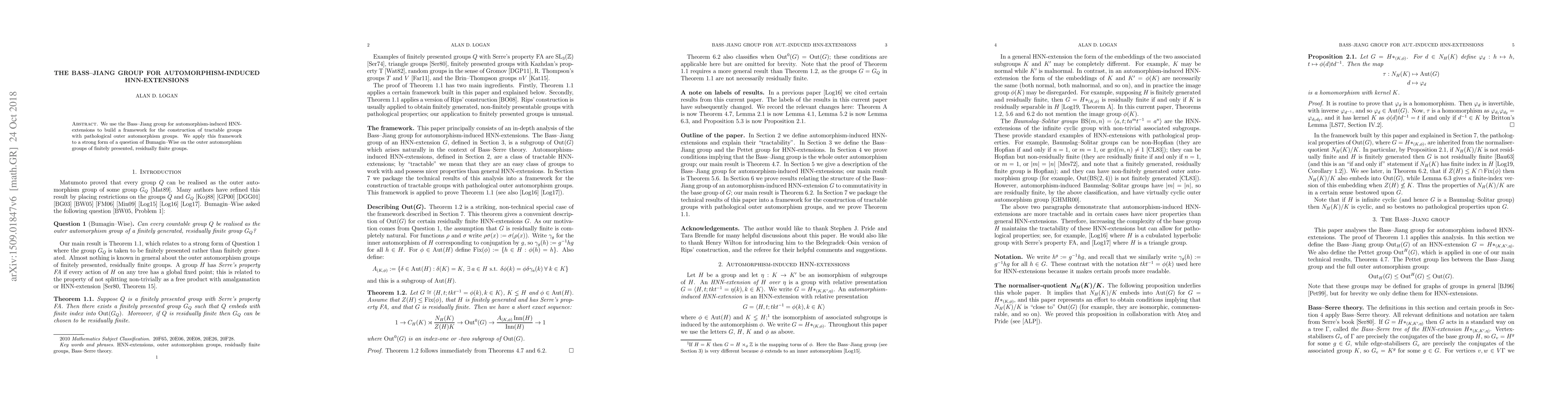 Researchers develop a framework for constructing tractable groups with pathological outer automorphism groups using the Bass-Jiang group for automorphism-induced HNN-extensions. This breakthrough addresses a long-standing question in group theory regarding finitely presented, residually finite groups.