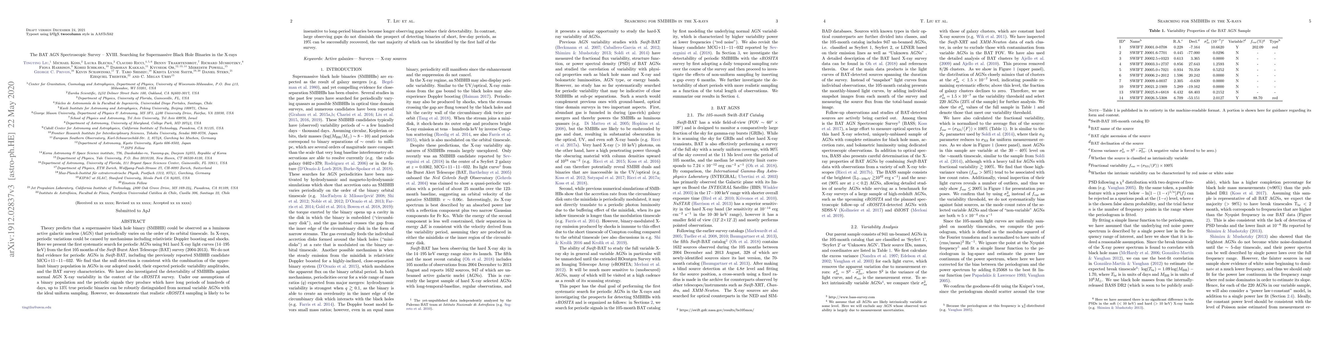 This paper reports the first systematic search for supermassive black hole binaries (SMBHBs) in X-ray light curves from the Swift BAT survey, finding no evidence for periodic AGNs. The study concludes that the null detection aligns with theoretical models of binary populations and their expected variability, while also discussing the limitations of detecting long-period binaries with future eROSITA survey data due to observing gaps.