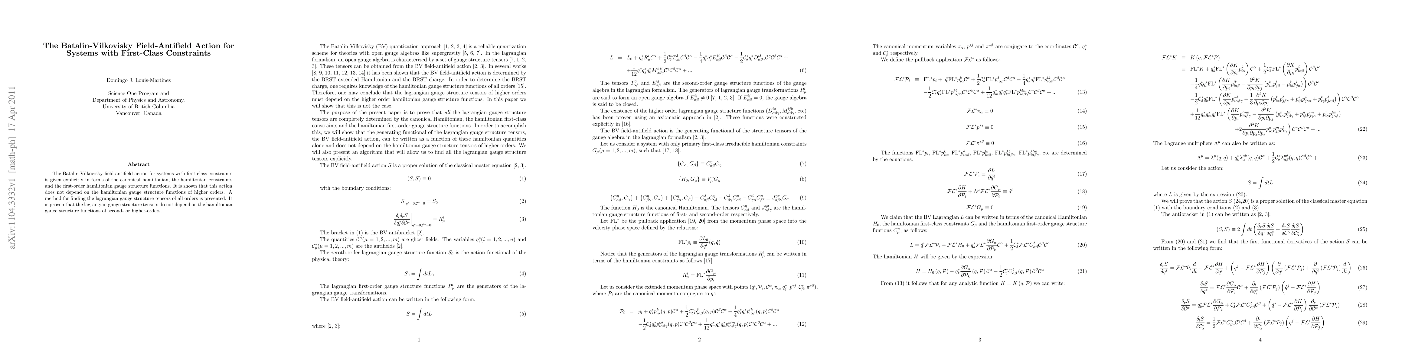 The Batalin-Vilkovisky field-antifield action for systems with first-class constraints is given explicitly in terms of the canonical hamiltonian, the hamiltonian constraints and the first-order hamiltonian gauge structure functions. It is shown that this action does not depend on the hamiltonian gauge structure functions of higher orders. A method for finding the lagrangian gauge structure tensors of all orders is presented. It is proven that the lagrangian gauge structure tensors do not depend on the hamiltonian gauge structure functions of second- or higher-orders.