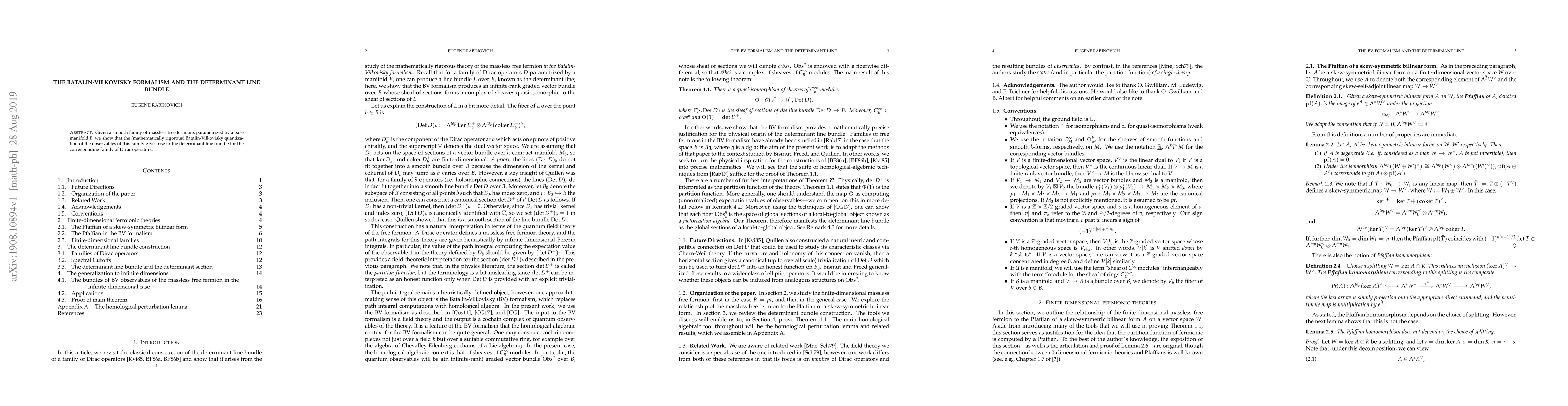 Given a smooth family of massless free fermions parametrized by a base manifold $B$, we show that the (mathematically rigorous) Batalin-Vilkovisky quantization of the observables of this family gives rise to the determinant line bundle for the corresponding family of Dirac operators.