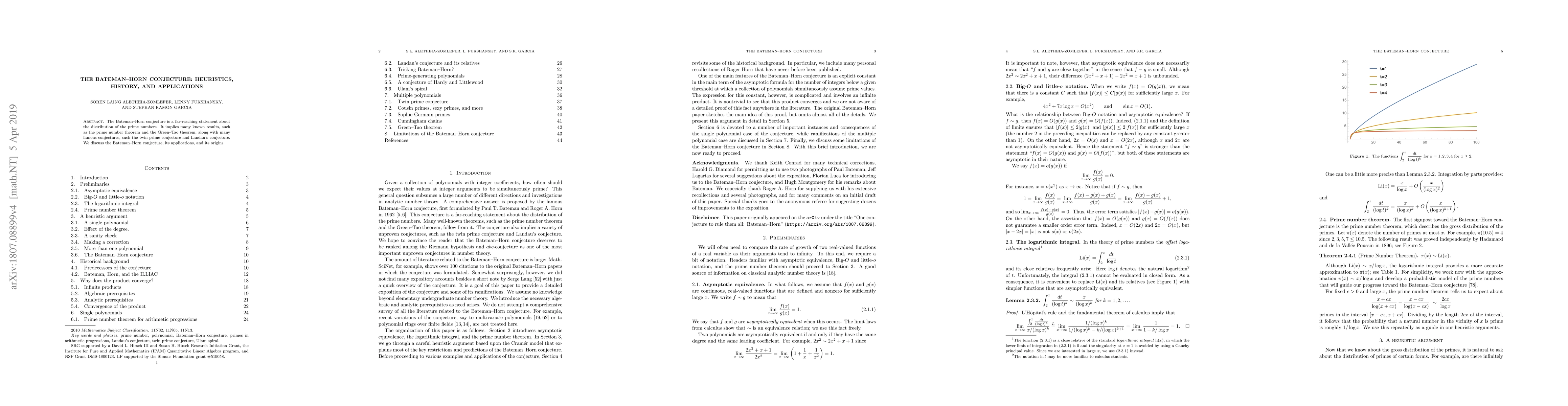 The Bateman-Horn conjecture provides insights into the distribution of prime numbers, implying significant results like the prime number theorem and the Green-Tao theorem, while also connecting to famous conjectures such as the twin prime conjecture and Landau's conjecture. This paper explores the conjecture's history, heuristics, and broad applications.