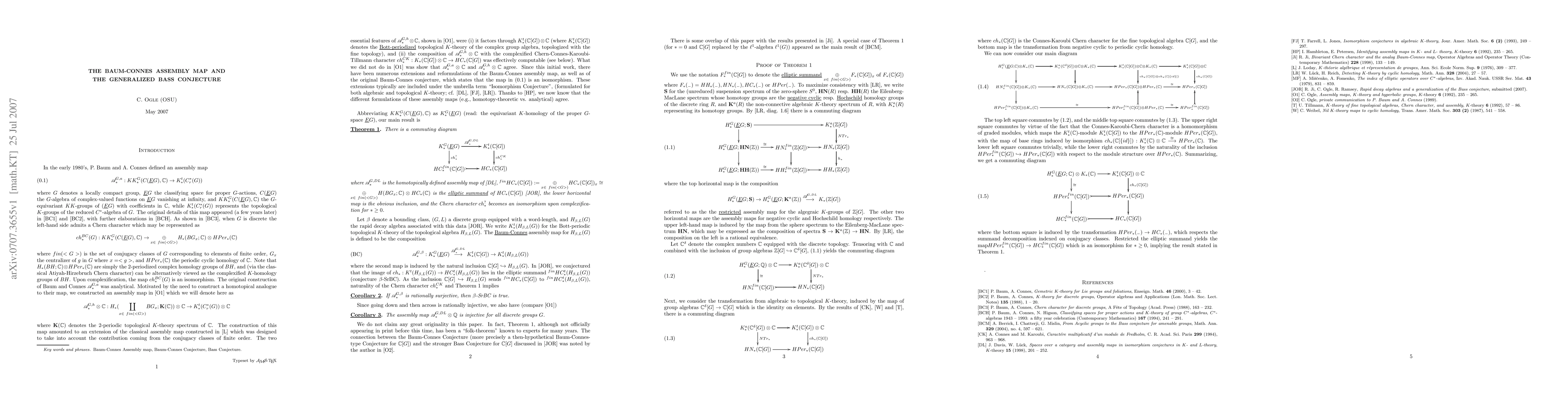 Summary: The paper establishes that the Connes-Karoubi-Chern character image under the Baum-Connes assembly map fits within the elliptic summand of cyclic homology, thereby proving that rational surjectivity of the Baum-Connes assembly map leads to the generalized Bass conjecture for weighted ell-1 completions of group algebras.