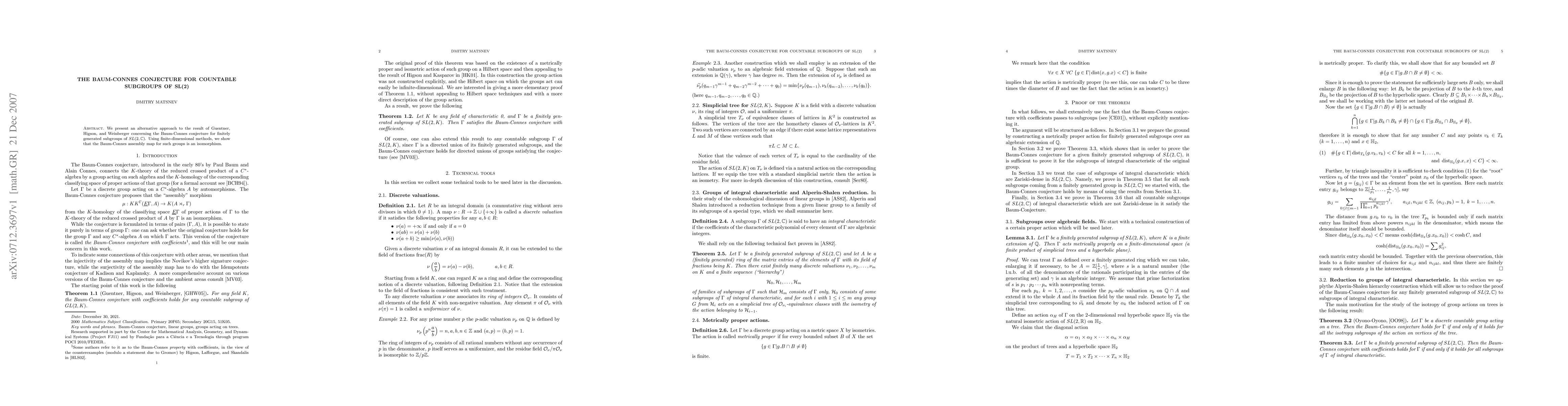 Researchers prove the Baum-Connes conjecture for finitely generated subgroups of SL(2,C) using finite-dimensional methods, showing that the assembly map is an isomorphism.