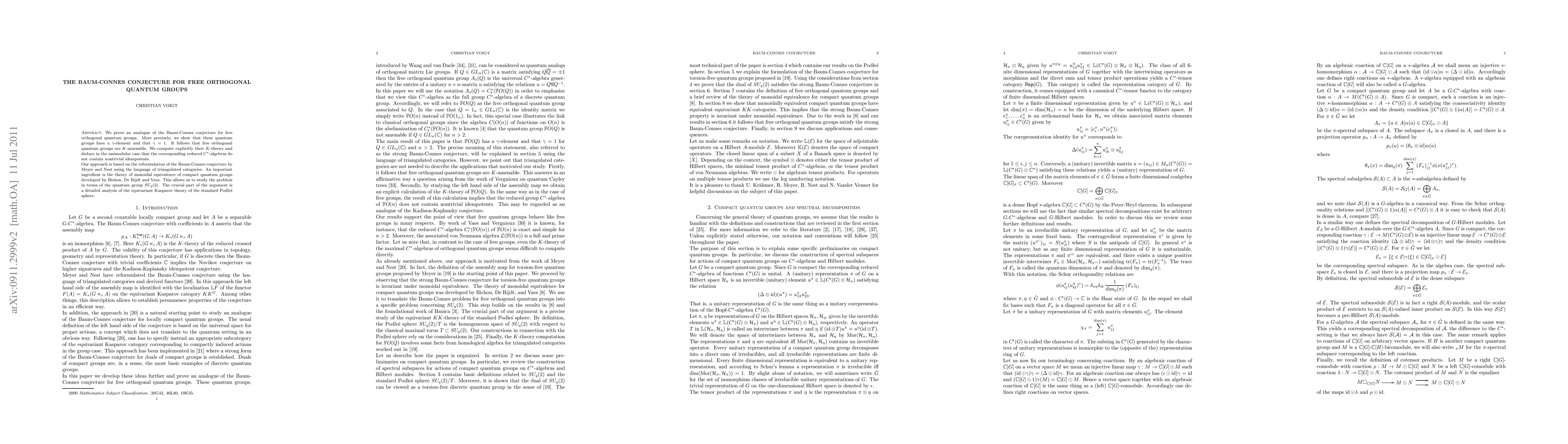 Researchers prove a version of the Baum-Connes conjecture for free orthogonal quantum groups, showing they have a specific property related to amenability and K-theory, with implications for the structure of their corresponding C* algebras.