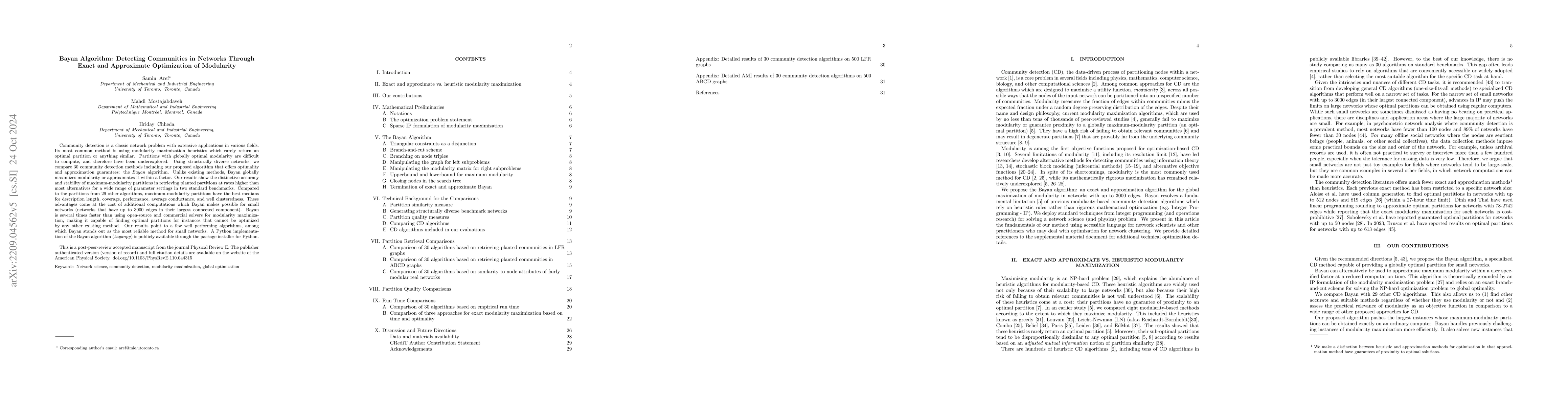 The Bayan algorithm offers an exact or near-optimal solution for community detection via modularity maximization, outperforming 30 other methods in accuracy and speed. It employs a branch-and-cut scheme for integer programming, suitable for networks with up to 3000 edges.