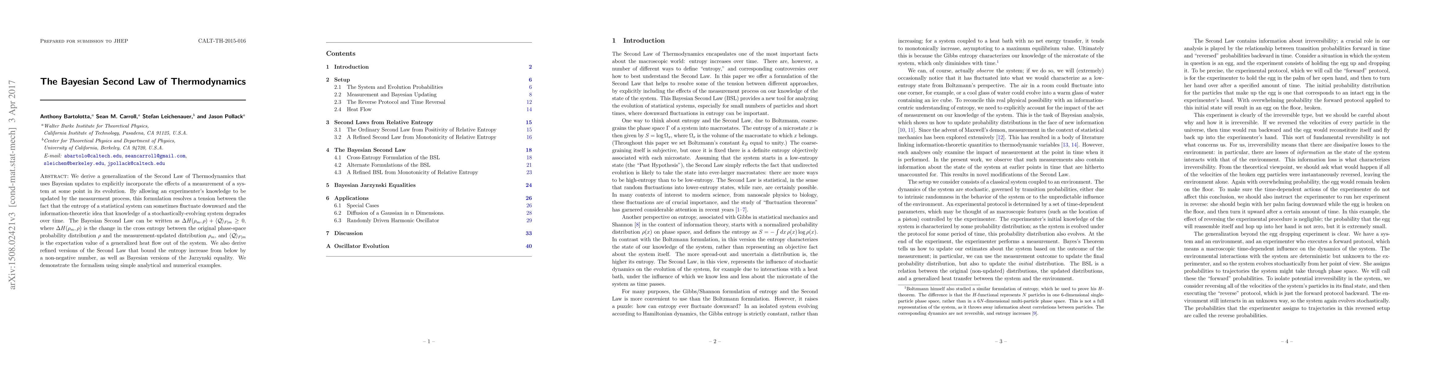 Researchers derive a new framework for thermodynamics that incorporates Bayesian updates to resolve conflicts between entropy fluctuation and information degradation over time. The 'Bayesian Second Law' provides bounds on entropy increase and generalizes Jarzynski equality.