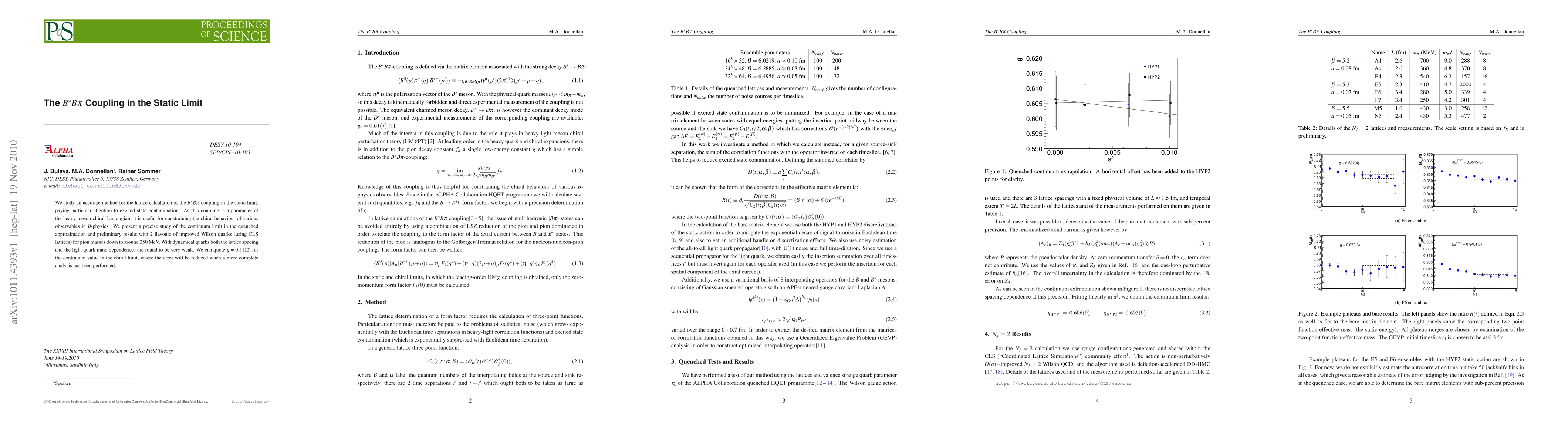 We study an accurate method for the lattice calculation of the B*Bpi Coupling in the static limit, paying particular attention to excited state contamination. As this coupling is a parameter of the heavy meson chiral Lagrangian, it is useful for constraining the chiral behaviour of various observables in B-physics. We present a precise study of the continuum limit in the quenched approximation and preliminary results with 2 flavours of improved Wilson quarks (using CLS lattices) for pion masses down to around 250 MeV. With dynamical quarks both the lattice spacing and the light quark mass dependences are found to be very weak. We can quote g = 0.51(2) for the continuum value in the chiral limit, where the error will be reduced when a more complete analysis has been performed.