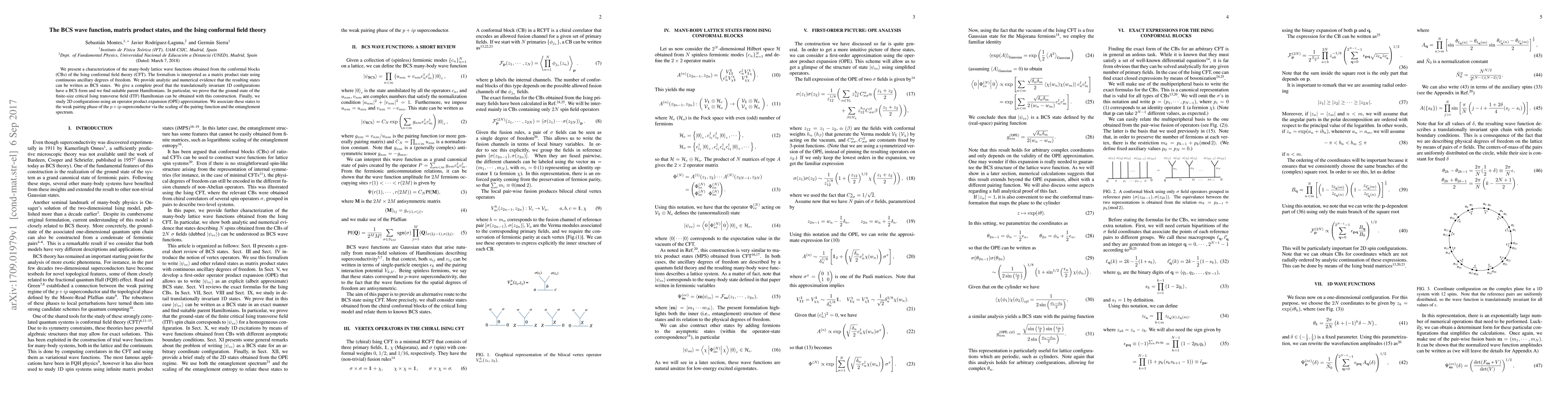Researchers characterized many-body wave functions from Ising conformal field theory as matrix product states that can be written as BCS states, providing a new understanding of superconductivity.