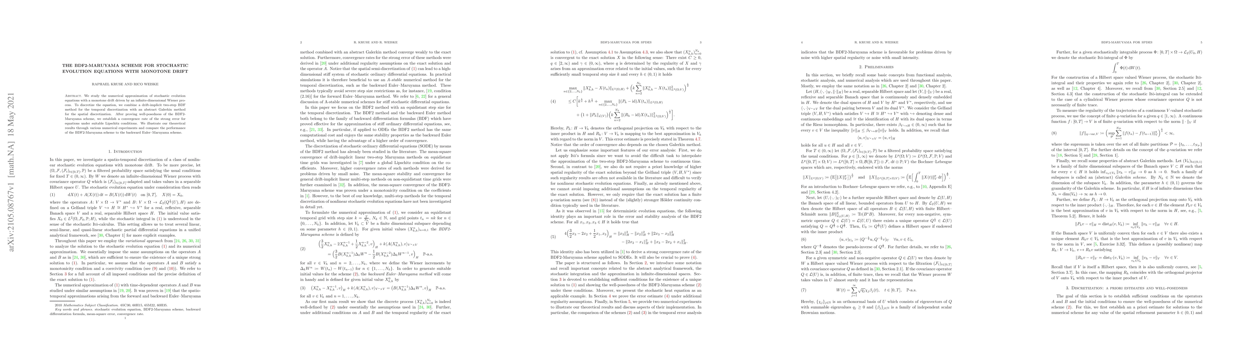 This paper investigates the BDF2-Maruyama scheme for solving stochastic evolution equations with monotone drift, combining a drift-implicit two-step BDF method with an abstract Galerkin method. It establishes well-posedness and convergence rates under Lipschitz conditions, and demonstrates superior performance compared to the backward Euler-Maruyama scheme through numerical experiments.