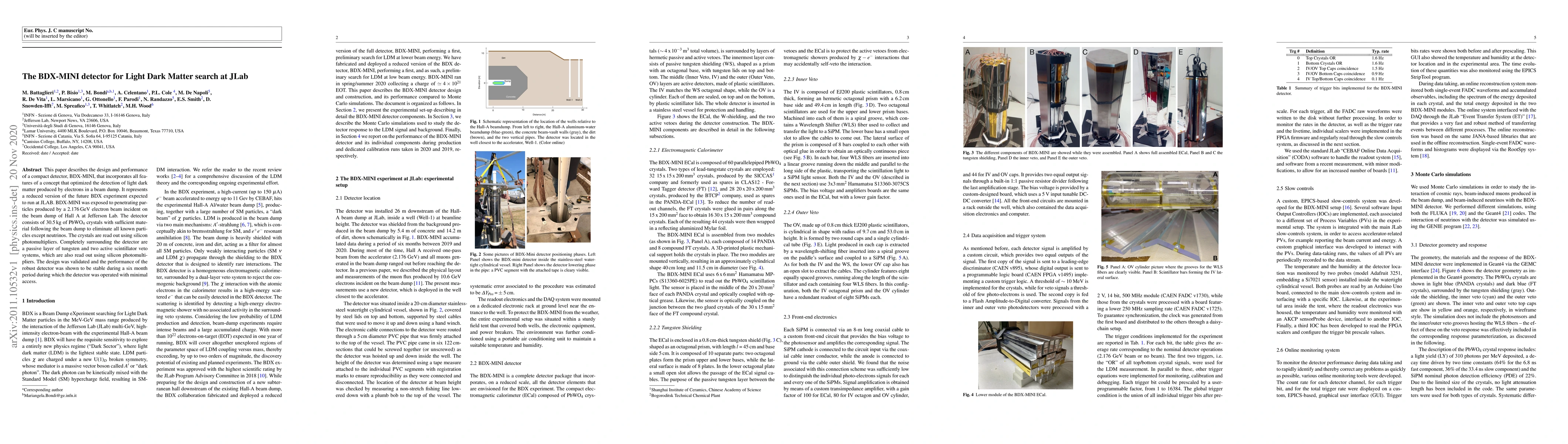 This paper details the design and successful performance of the BDX-MINI detector, a compact prototype for light dark matter detection at JLab, utilizing PbWO4 crystals and silicon photomultipliers, validated through a six-month operation period. The detector's robust design includes passive and active veto systems to isolate dark matter signals from other particles.