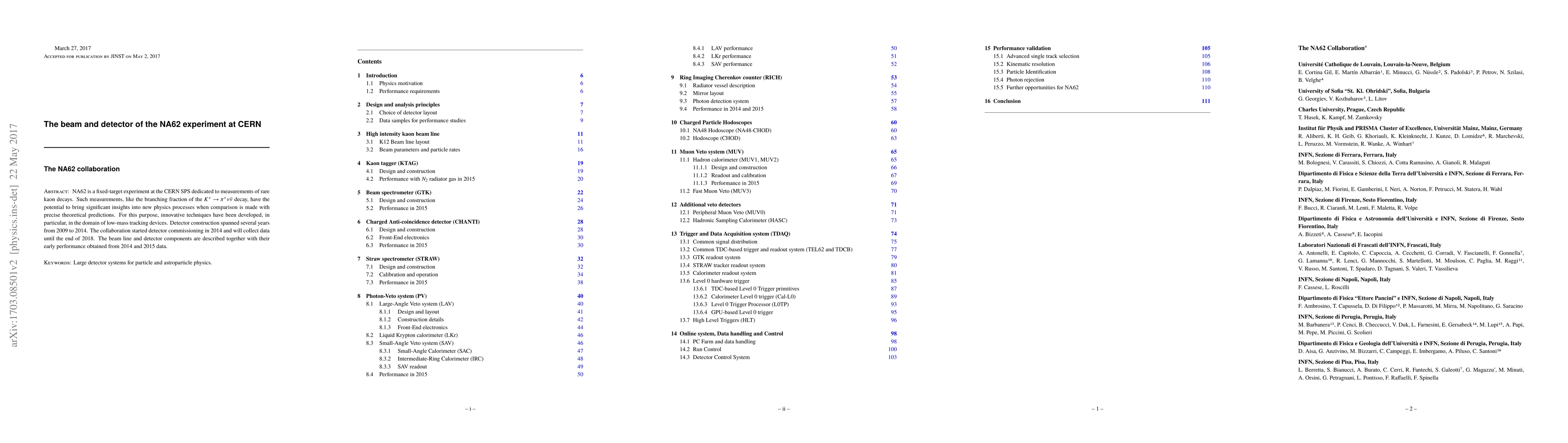 NA62 is a fixed-target experiment at the CERN SPS dedicated to measurements of rare kaon decays. Such measurements, like the branching fraction of the $K^{+} \rightarrow \pi^{+} \nu \bar\nu$ decay, have the potential to bring significant insights into new physics processes when comparison is made with precise theoretical predictions. For this purpose, innovative techniques have been developed, in particular, in the domain of low-mass tracking devices. Detector construction spanned several years from 2009 to 2014. The collaboration started detector commissioning in 2014 and will collect data until the end of 2018. The beam line and detector components are described together with their early performance obtained from 2014 and 2015 data.