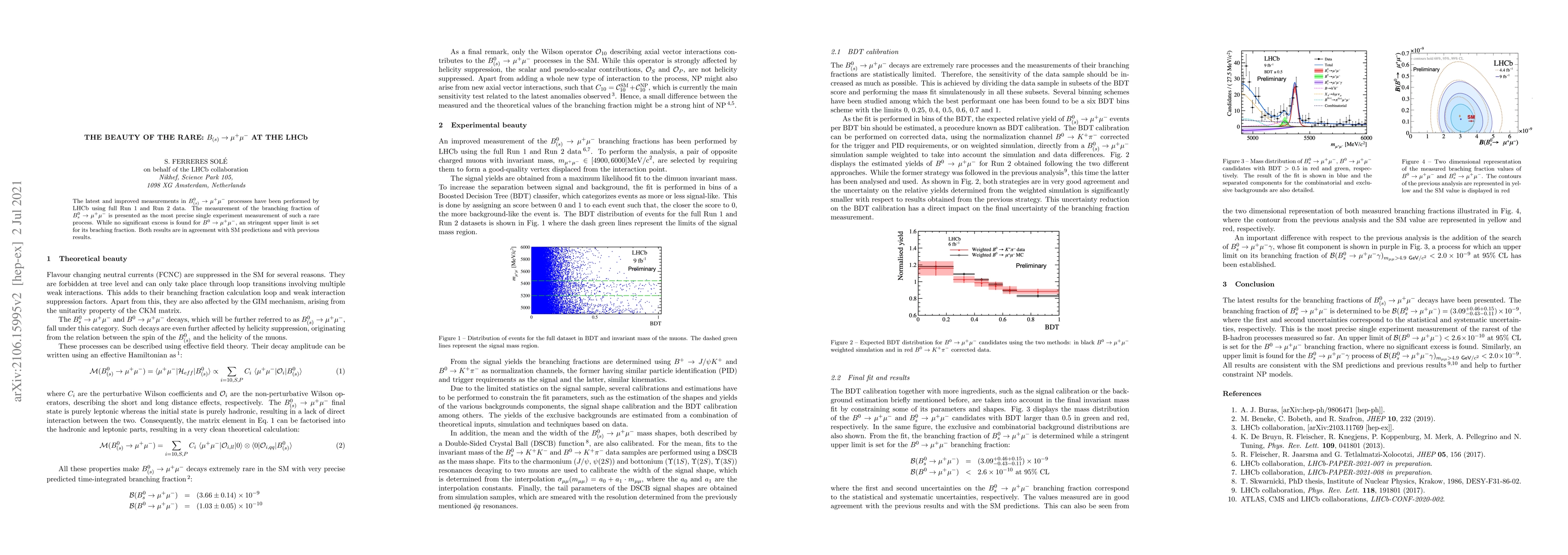 The latest and improved measurements in $B^0_{(s)}\rightarrow\mu^+ \mu^-$ processes have been performed by LHCb using full Run 1 and Run 2 data. The measurement of the branching fraction of $B^0_{s}\rightarrow\mu^+ \mu^-$ is presented as the most precise single experiment measurement of such a rare process. While no significant excess is found for $B^0\rightarrow\mu^+ \mu^-$, an stringent upper limit is set for its braching fraction. Both results are in agreement with SM predictions and with previous results.