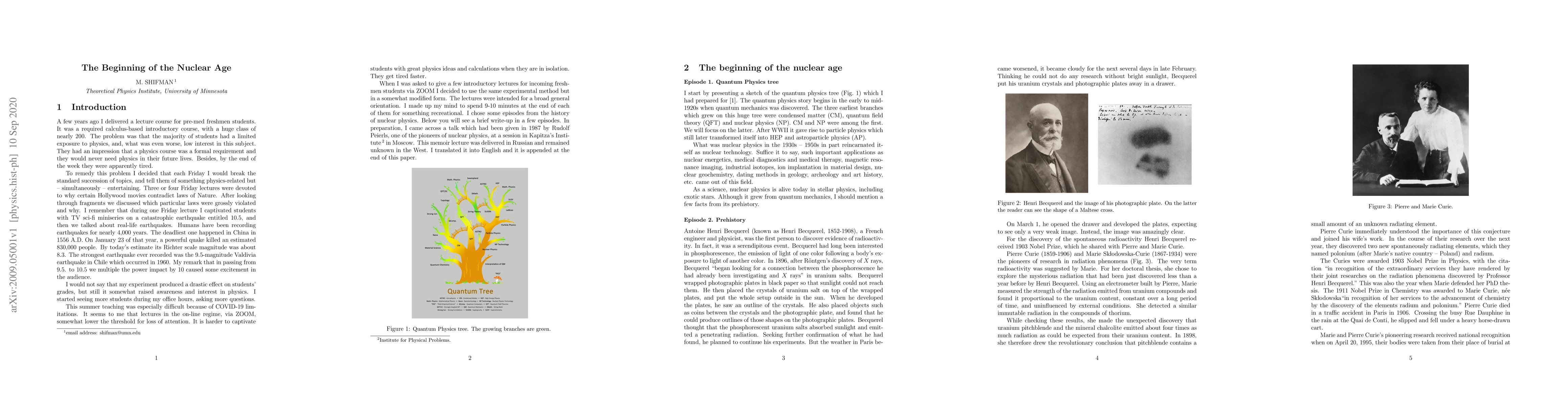 The article below is based on lectures delivered to new students remotely in the course of orientation. It presents the quantum theory tree from its inception a century ago till today. The main focus is on the nuclear physics - HEP branch.