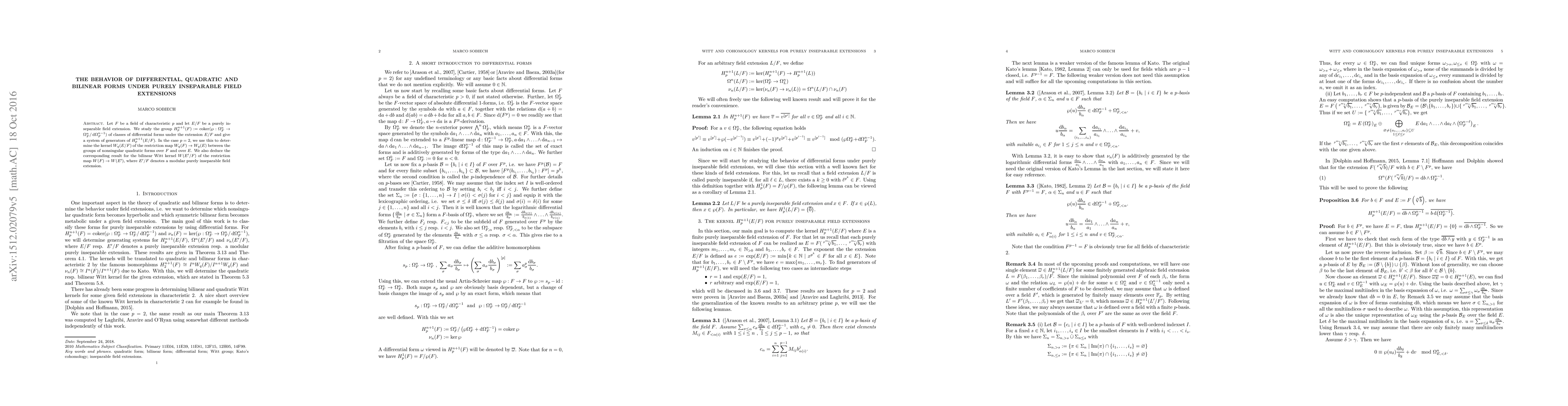 Let $F$ be a field of characteristic $p$ and let $E/F$ be a purely inseparable field extension. We study the group $H_p^{n+1}(F)$ of classes of differential forms under the restriction map $H_p^{n+1}(F)\to H_p^{n+1}(E)$ and give a system of generators of the kernel $H_p^{n+1}(E/F)$. In the case $p=2$, we use this to determine the kernel $W_q(E/F)$ of the restriction map $W_q(F) \to W_q(E)$ between the group of nonsingular quadratic forms over $F$ and over $E$. We also deduce the corresponding result for the bilinear Witt kernel $W(E'/F)$ of the restriction map $W(F) \to W(E')$, where $E'/F$ denotes a modular purely inseparable field extension.