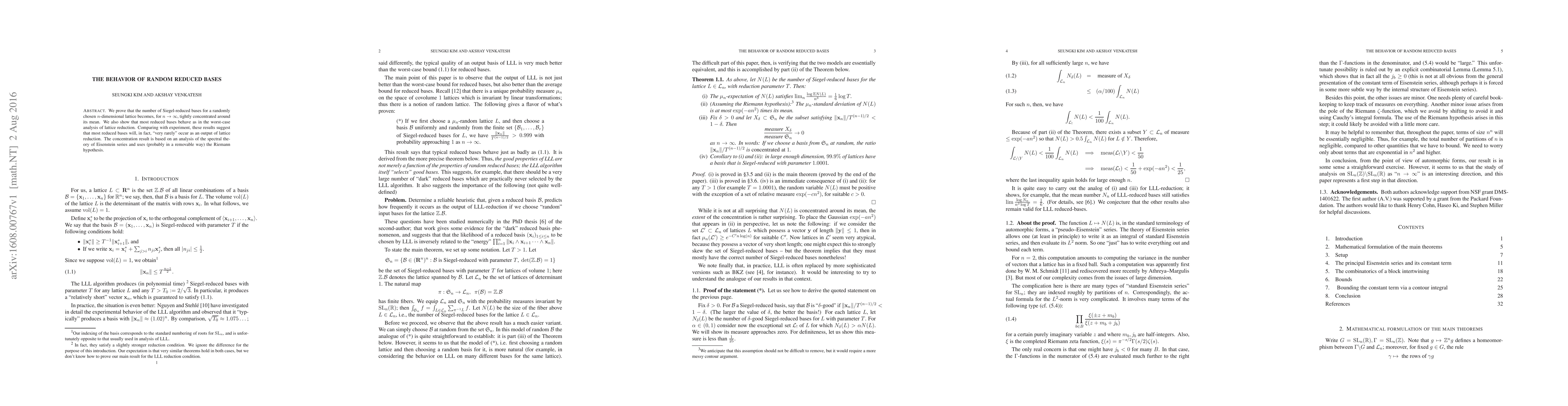 We prove that the number of Siegel-reduced bases for a randomly chosen $n$-dimensional lattice becomes, for $n \rightarrow \infty$, tightly concentrated around its mean. We also show that most reduced bases behave as in the worst-case analysis of lattice reduction. Comparing with experiment, these results suggest that most reduced bases will, in fact, "very rarely" occur as an output of lattice reduction. The concentration result is based on an analysis of the spectral theory of Eisenstein series and uses (probably in a removable way) the Riemann hypothesis.