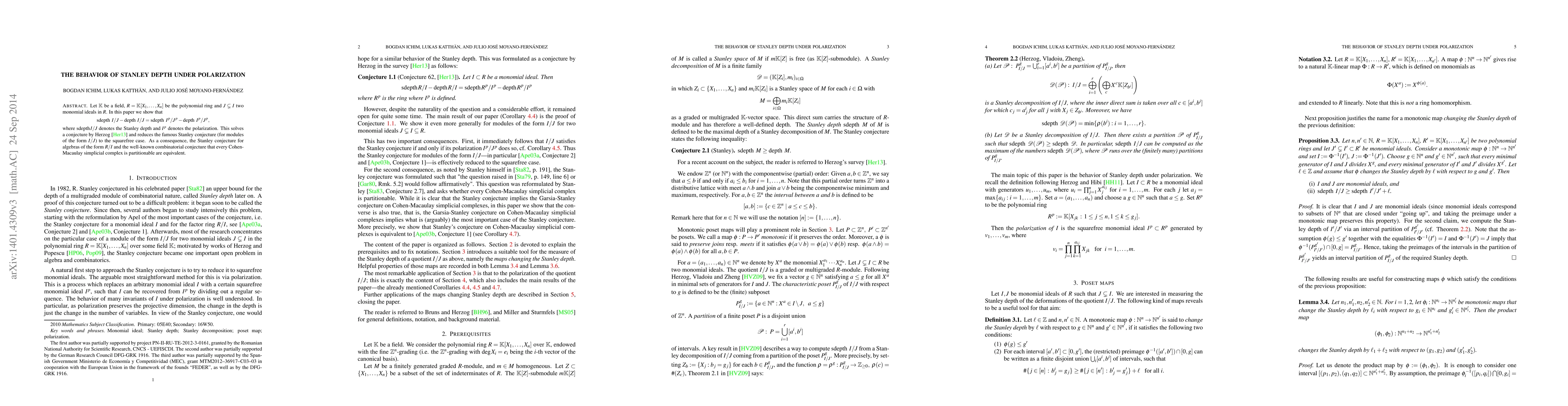 This paper proves a key relationship between the Stanley depth of an ideal and its polarization, solving a conjecture and reducing a famous problem to the squarefree case.