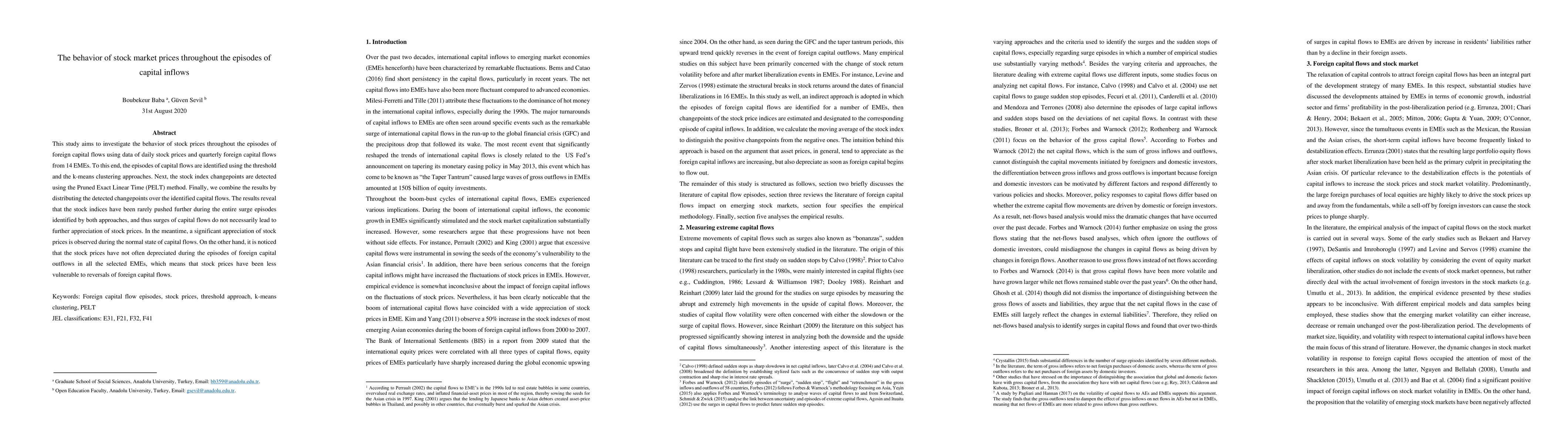 Stock prices in emerging markets tend to appreciate during normal capital flow periods but rarely surge during episodes of foreign capital inflows. Conversely, prices often remain stable or depreciate during episodes of foreign capital outflows.