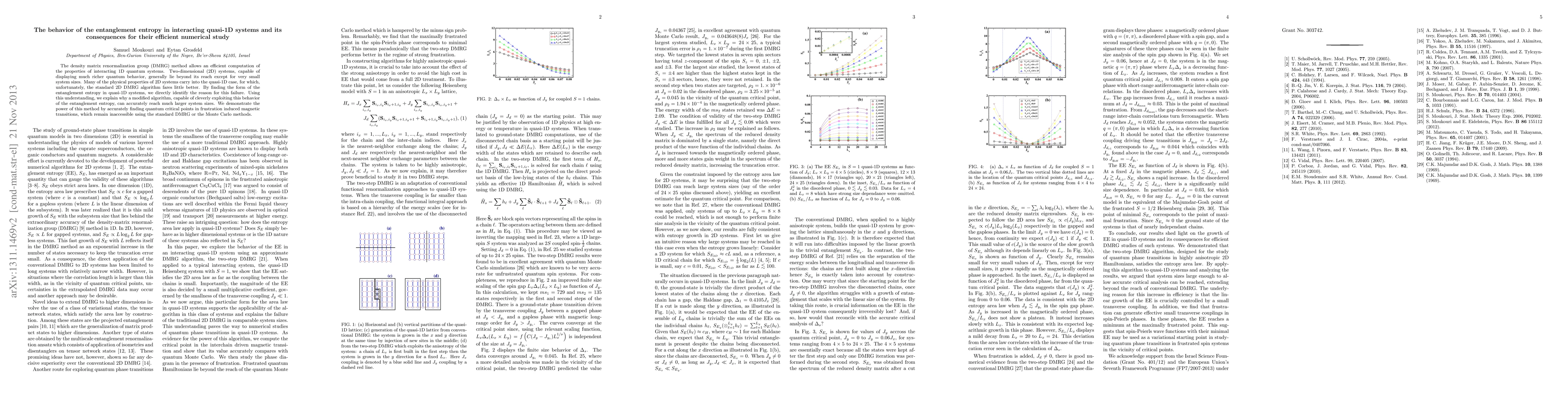 This paper explores the entanglement entropy in quasi-1D systems to understand why standard DMRG methods fail at larger sizes. It proposes a modified algorithm that leverages this behavior, enabling accurate study of quantum critical points in frustration-induced magnetic transitions.