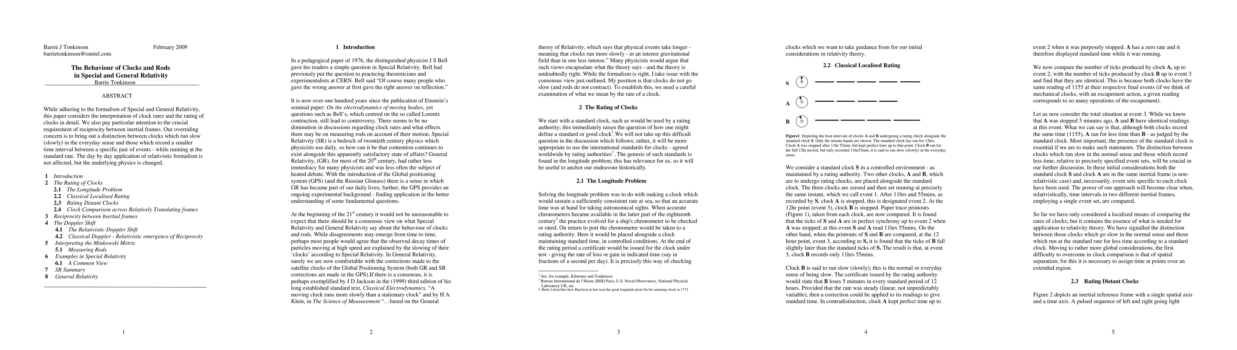 This paper explores the behavior of clocks and rods under Special and General Relativity, emphasizing the distinction between clocks that run slower in the everyday sense and those that record shorter time intervals due to relativistic effects, while maintaining reciprocity between inertial frames. The application of relativistic formalism remains consistent, though the underlying physical interpretation changes.