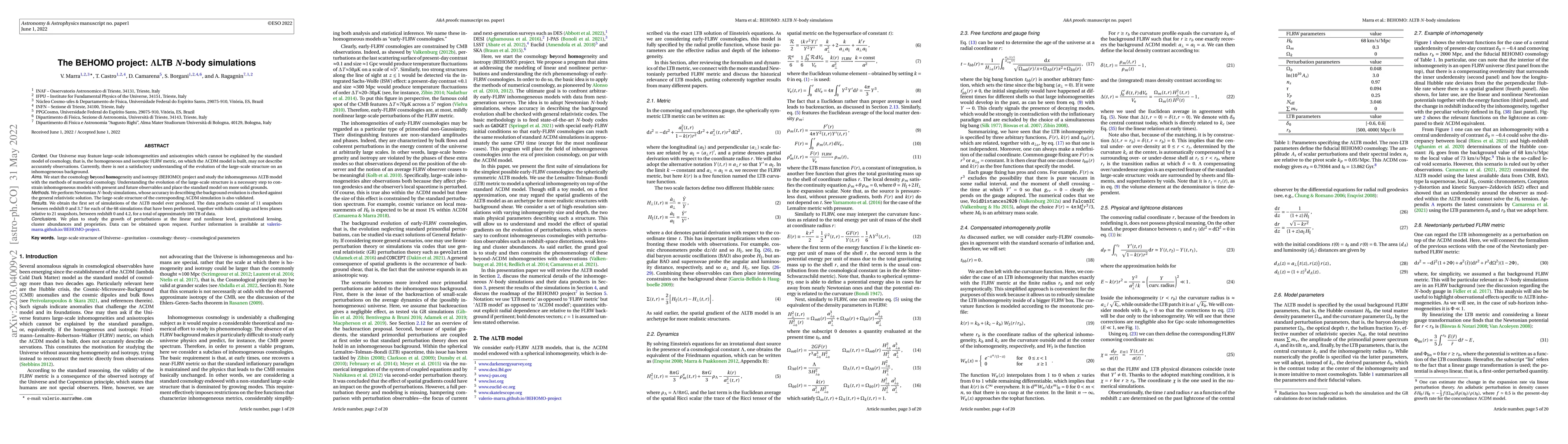 The BEHOMO project conducts $\Lambda$LTB $N$-body simulations to explore the evolution of large-scale structures in an inhomogeneous universe, challenging the standard $\Lambda$CDM model. The study produces the first set of $\Lambda$LTB model simulations, providing valuable data for future analyses of perturbations, lensing, and cluster properties.