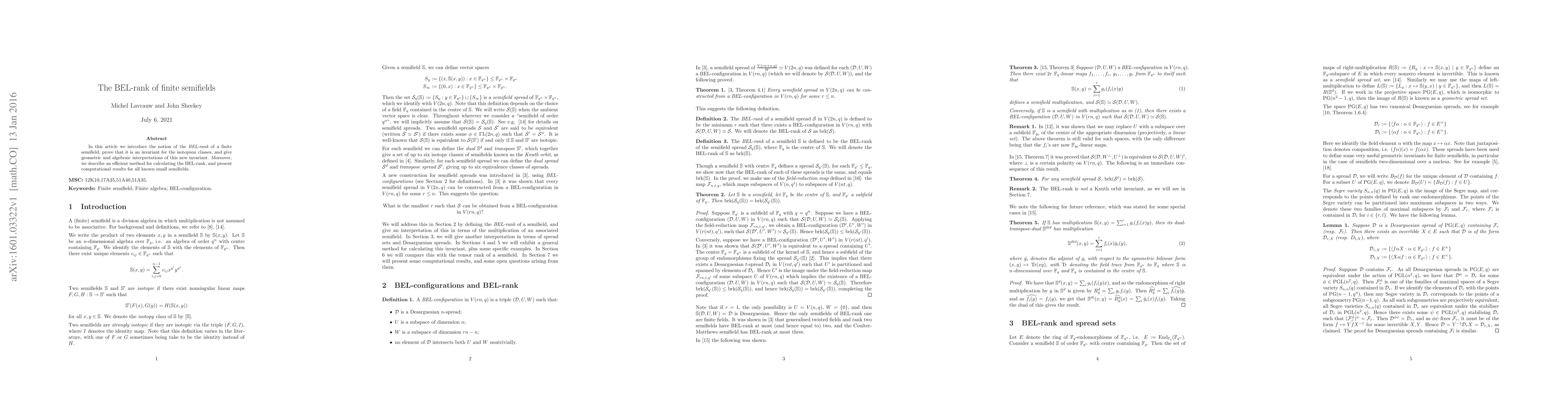 This paper introduces the BEL-rank as a new invariant for finite semifields, proving its relevance for isotopism classes and providing both geometric and algebraic interpretations. It also presents an efficient calculation method and computational results for small semifields.