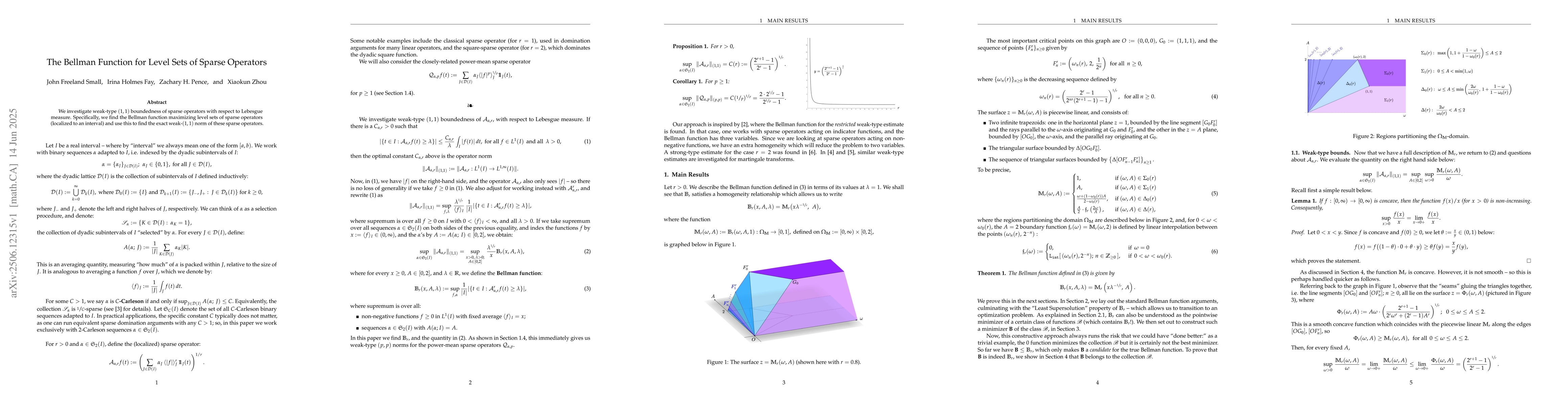 We investigate weak-type $(1, 1)$ boundedness of sparse operators with respect to Lebesgue measure. Specifically, we find the Bellman function maximizing level sets of sparse operators (localized to an interval) and use this to find the exact weak-$(1,1)$ norm of these sparse operators.