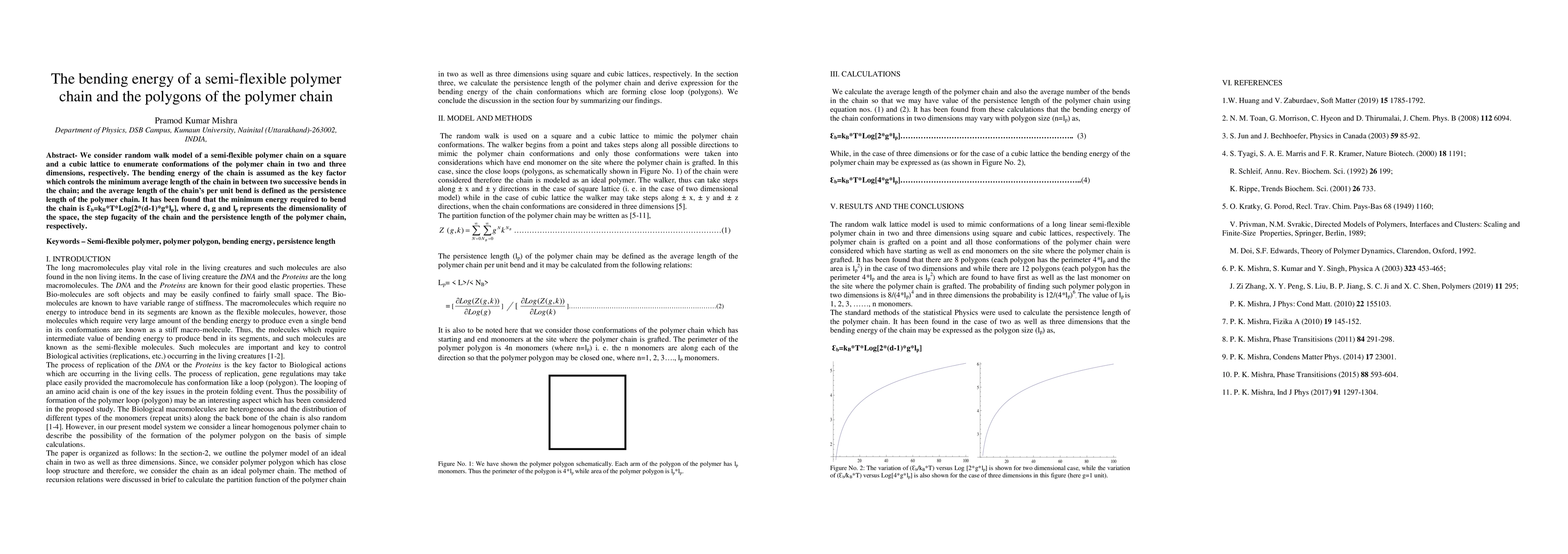 We consider random walk model of a semi-flexible polymer chain on a square and a cubic lattice to enumerate conformations of the polymer chain in two and three dimensions, respectively. The bending energy of the chain is assumed as the key factor which controls the minimum average length of the chain in between two successive bends in the chain; and the average length of the chains per unit bend is defined as the persistence length of the polymer chain. It has been found that the minimum energy required to bend the chain is expressed in the form of simple relation which includes space dimensionality, step fugacity and persistence length.