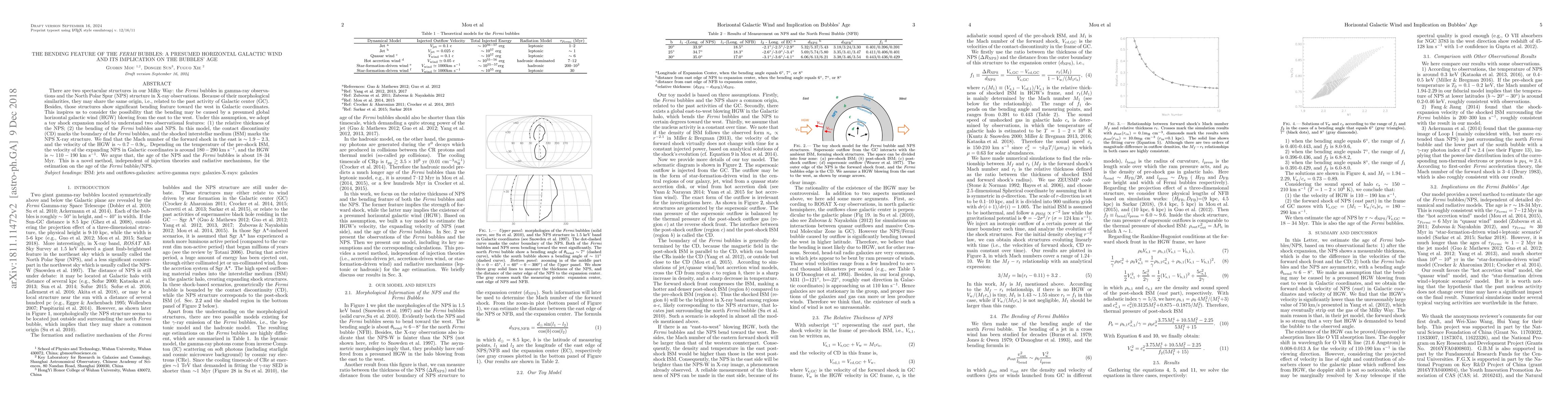 Research proposes a horizontal galactic wind as cause for bending of Fermi bubbles and North Polar Spur structures, estimating their age to 18-34 million years.