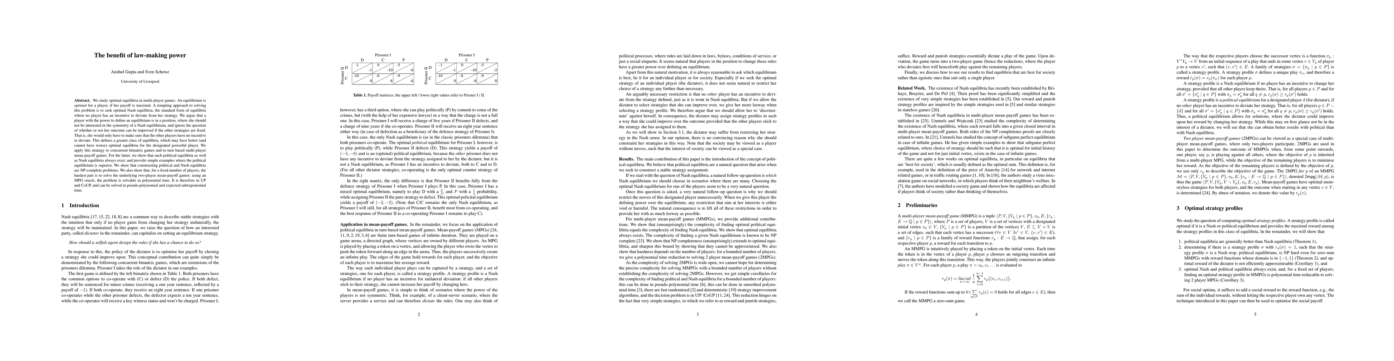 We study optimal equilibria in multi-player games. An equilibrium is optimal for a player, if her payoff is maximal. A tempting approach to solving this problem is to seek optimal Nash equilibria, the standard form of equilibria where no player has an incentive to deviate from her strategy. We argue that a player with the power to define an equilibrium is in a position, where she should not be interested in the symmetry of a Nash equilibrium, and ignore the question of whether or not her outcome can be improved if the other strategies are fixed. That is, she would only have to make sure that the other players have no incentive to deviate. This defines a greater class of equilibria, which may have better (and cannot have worse) optimal equilibria for the designated powerful player. We apply this strategy to concurrent bimatrix games and to turn based multi-player mean-payoff games. For the latter, we show that such political equilibria as well as Nash equilibria always exist, and provide simple examples where the political equilibrium is superior. We show that constructing political and Nash equilibria are NP-complete problems. We also show that, for a fixed number of players, the hardest part is to solve the underlying two-player mean-payoff games: using an MPG oracle, the problem is solvable in polynomial time. It is therefore in UP and CoUP, and can be solved in pseudo polynomial and expected subexponential time.