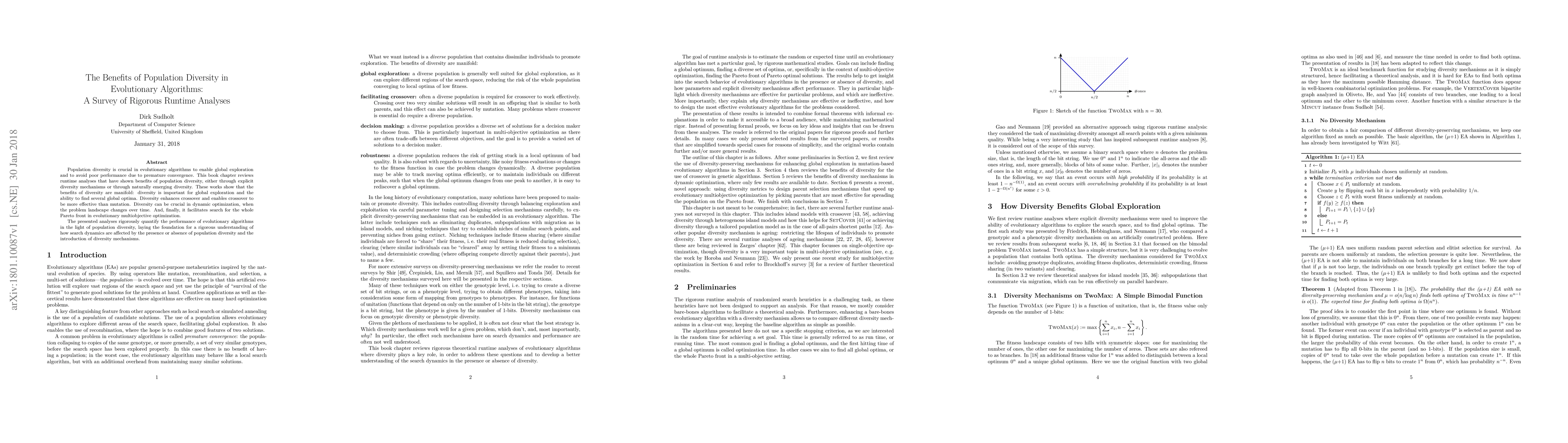 This paper surveys rigorous runtime analyses demonstrating the benefits of population diversity in evolutionary algorithms, showing how diversity enhances global exploration, improves crossover effectiveness, and supports dynamic and multiobjective optimization. The analyses provide a foundation for understanding the impact of diversity on search dynamics.