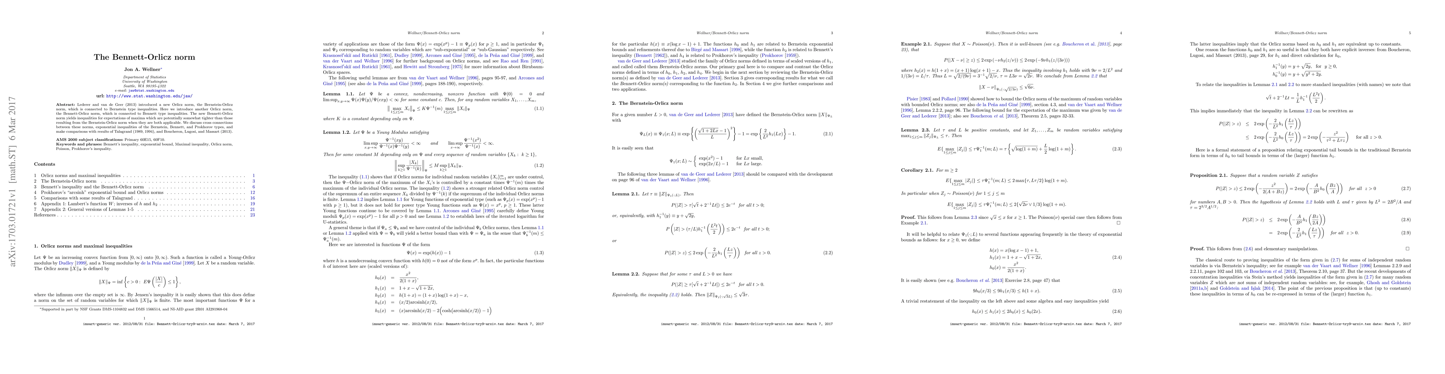 The Bennett-Orlicz norm, introduced by Lederer and van de Geer, is connected to Bennett type inequalities and offers tighter expectations of maxima compared to the Bernstein-Orlicz norm. It also explores connections to other norms and inequalities, comparing results with Talagrand and Boucheron et al.