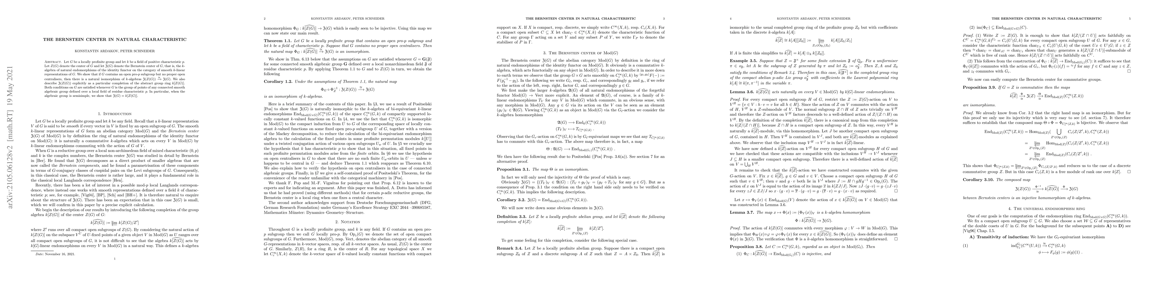 The paper establishes a natural isomorphism between the Bernstein center of a group's center and the group itself, under certain conditions, with implications for understanding representation theory in locally profinite groups.