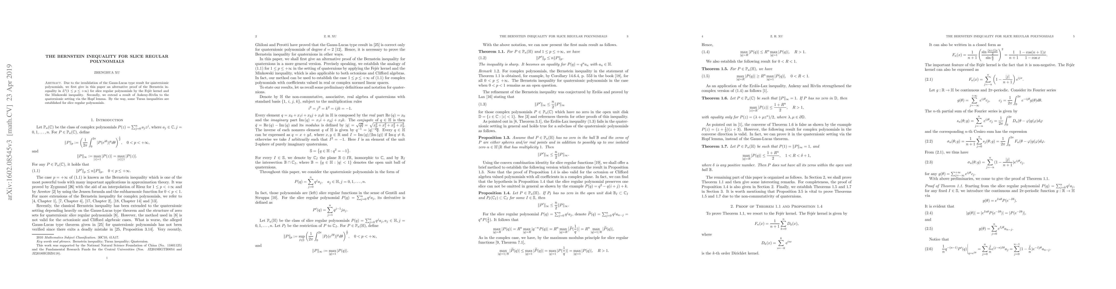 The paper presents an alternative proof of the Bernstein inequality in L^p (1 ≤ p ≤ +∞) for slice regular polynomials using the Fejér kernel and the Minkowski inequality. It also extends a result of Ankeny-Rivlin to the quaternionic setting via the Hopf lemma and establishes some Turan inequalities for slice regular polynomials.