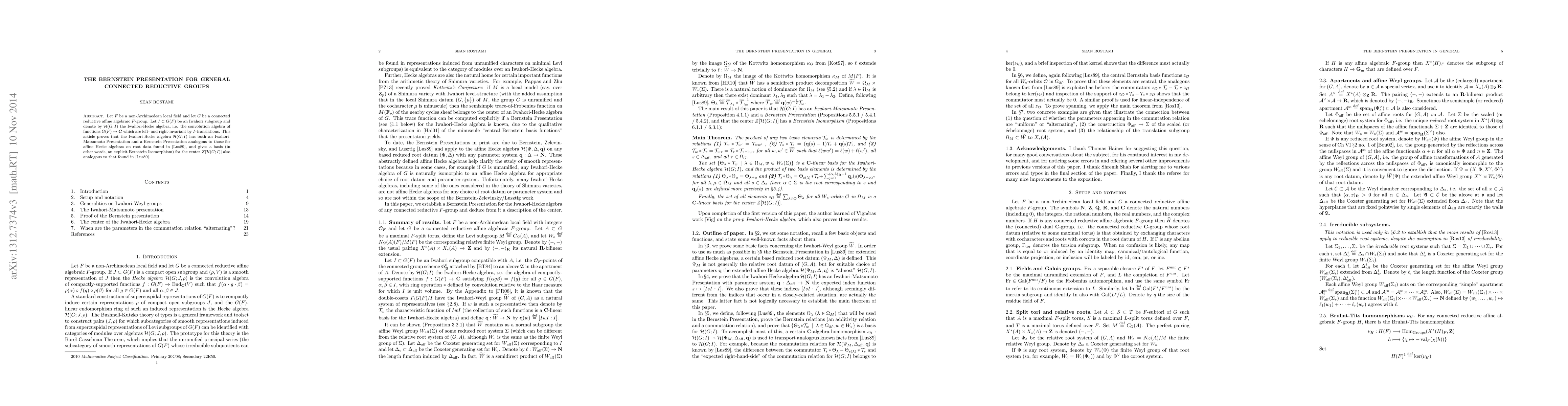 Let F be a non-Archimedean local field and let G be a connected reductive affine algebraic F-group. Let I be an Iwahori subgroup of G(F) and denote by H(G; I) the Iwahori-Hecke algebra, i.e. the convolution algebra of complex-valued functions on G(F) which are left- and right-invariant by I-translations. This article proves that the Iwahori-Hecke algebra H(G; I) has both an Iwahori-Matsumoto Presentation and a Bernstein Presentation analogous to those for affine Hecke algebras on root data found in Lusztig's "Affine Hecke algebras and their graded version", and gives a basis (in other words, an explicit Bernstein Isomorphism) for the center Z[H(G; I)] also analogous to that found in loc. cit.