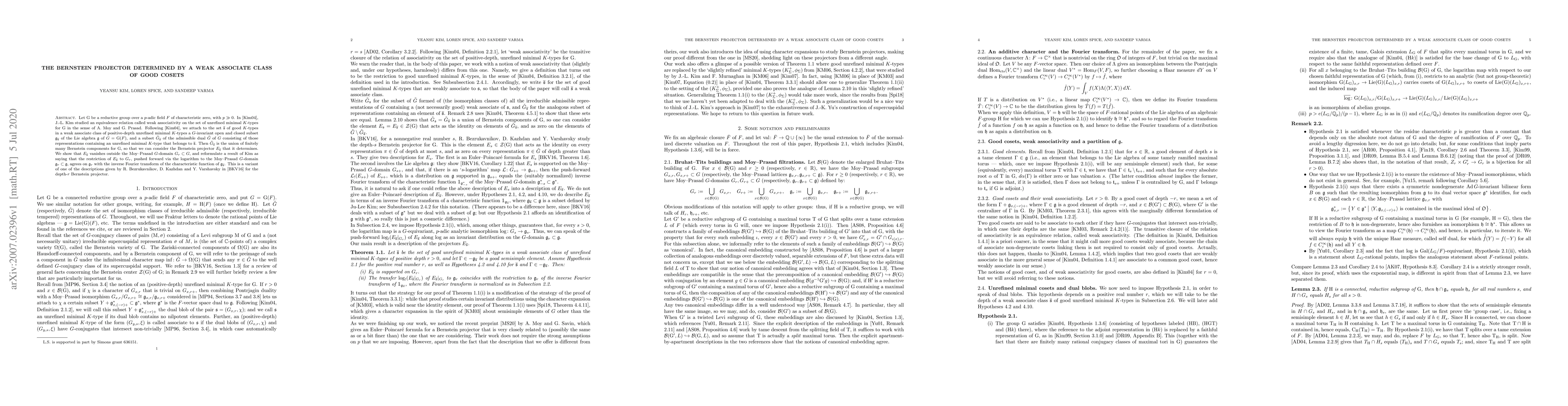 Let $G$ be a reductive group over a $p$-adic field $F$ of characteristic zero, with $p \gg 0$. In [Kim04], J.-L. Kim studied an equivalence relation called weak associativity on the set of unrefined minimal $K$-types for $G$ in the sense of A. Moy and G. Prasad. Following [Kim04], we attach to the set \(\overline{\mathfrak s}\) of good \(K\)-types in a weak associate class of positive-depth unrefined minimal $K$-types a $G(F)$-invariant open and closed subset $\mathfrak g(F)_{\overline{\mathfrak s}}$ of the Lie algebra $\mathfrak g(F)$ of $G(F)$, and a subset $\tilde G_{\overline{\mathfrak s}}$ of the admissible dual \(\tilde G\) of \(G(F)\) consisting of those representations containing an unrefined minimal $K$-type that belongs to $\overline{\mathfrak s}$. Then \(\tilde G_{\overline{\mathfrak s}}\) is the union of finitely many Bernstein components for $G$, so that we can consider the Bernstein projector $E_{\overline{\mathfrak s}}$ that it determines. We show that $E_{\overline{\mathfrak s}}$ vanishes outside the Moy--Prasad $G(F)$-domain $G(F)_r \subset G(F)$, and reformulate a result of Kim as saying that the restriction of $E_{\overline{\mathfrak s}}$ to $G(F)_r$, pushed forward via the logarithm to the Moy--Prasad $G(F)$-domain $\mathfrak g(F)_r \subset \mathfrak g(F)$, agrees on $\mathfrak g(F)_r$ with the inverse Fourier transform of the characteristic function of $\mathfrak g(F)_{\overline{\mathfrak s}}$. This is a variant of one of the descriptions given by R. Bezrukavnikov, D. Kazhdan and Y. Varshavsky in arXiv:1504.01353 for the depth-$r$ Bernstein projector.