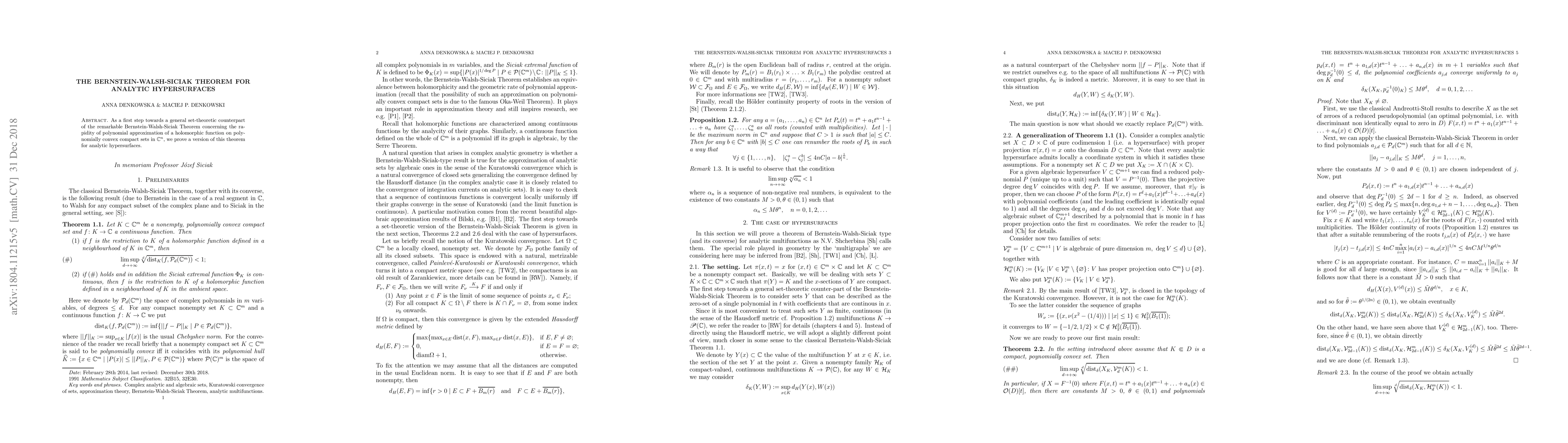 The result provides a step towards a set-theoretic counterpart to the theorem and has implications for the study of holomorphic functions on compact sets in complex space.