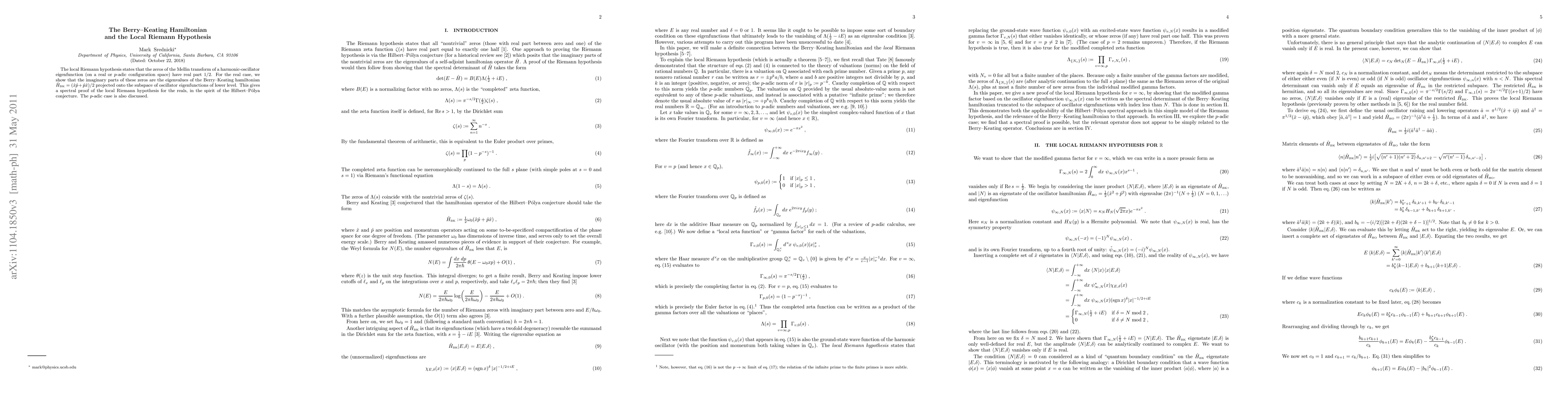 The paper provides a spectral proof of the local Riemann hypothesis for real harmonic-oscillator eigenfunctions by showing that the zeros' imaginary parts correspond to the eigenvalues of the Berry-Keating Hamiltonian, extending the Hilbert-Polya conjecture. The p-adic case is also examined.