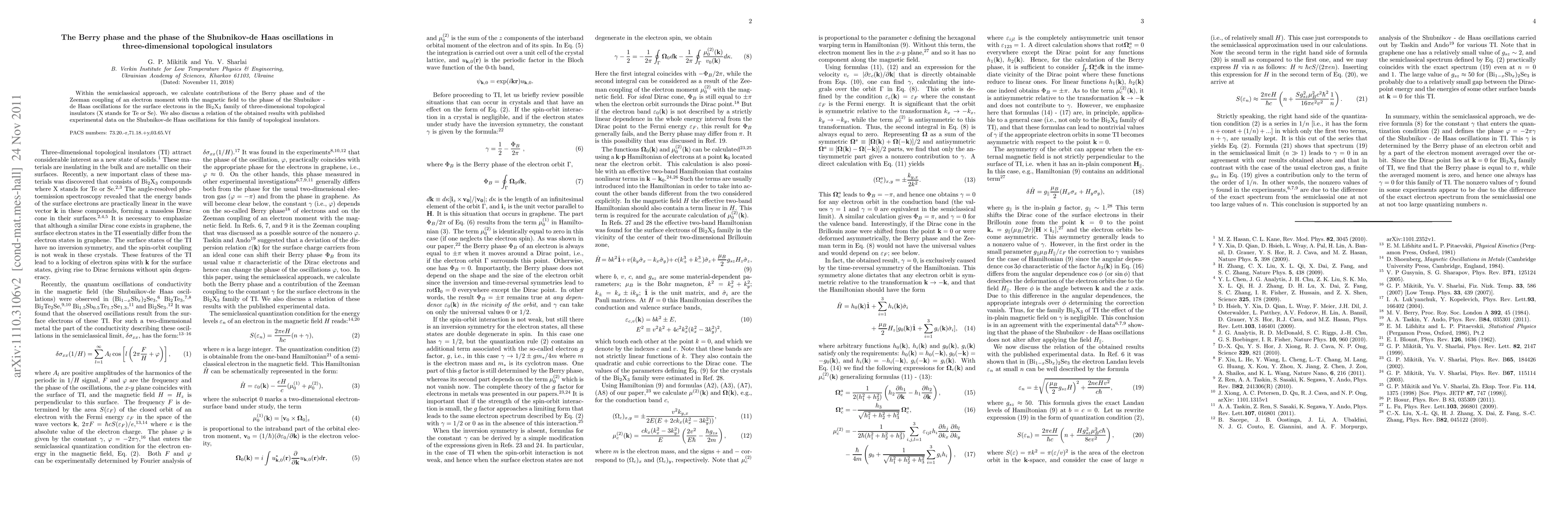 Within the semiclassical approach, we calculate contributions of the Berry phase and of the Zeeman coupling of the electron moment with the magnetic field to the phase of the Shubnikov - de Haas oscillations for the surface electrons in the Bi$_2$X$_3$ family of three-dimensional topological insulators (X stands for Te or Se). We also discuss a relation of the obtained results with published experimental data on the Shubnikov-de Haas oscillations for this family of topological insulators.