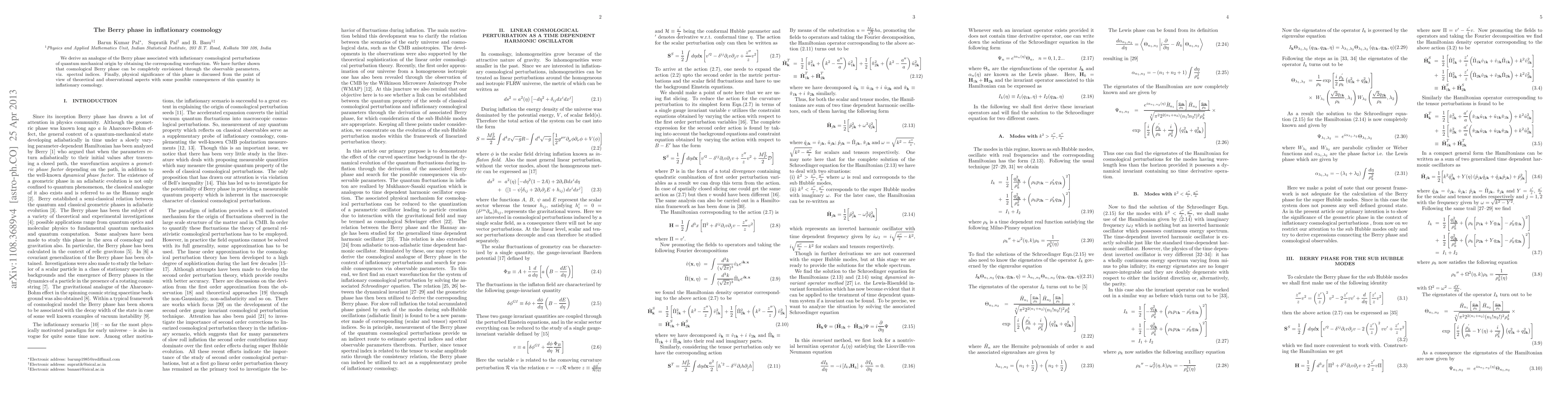 This paper derives an inflationary cosmological Berry phase linked to quantum mechanical perturbations, demonstrating its observability via spectral indices. It discusses the theoretical and observational implications, suggesting potential consequences for inflationary cosmology.