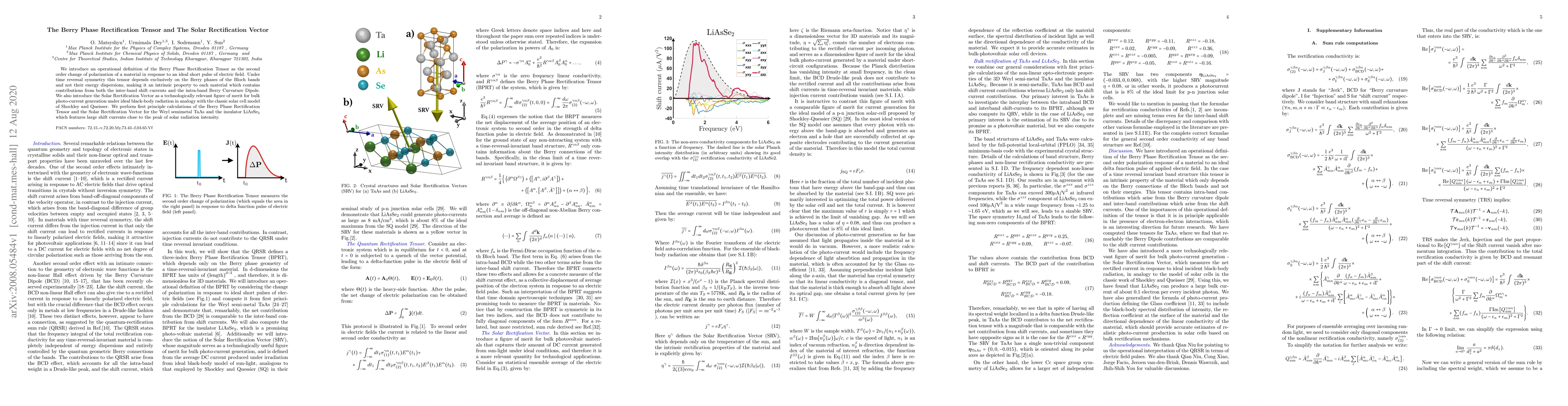 We introduce an operational definition of the Berry Phase Rectification Tensor as the second-order change of polarization of a material in response to an ideal short pulse of an electric field. Under time-reversal symmetry this tensor depends exclusively on the Berry phases of the Bloch bands and not their energy dispersions, making it an intrinsic property to each material which contains contributions from both the inter-band shift currents and the intra-band Berry Curvature Dipole. We also introduce the Solar Rectification Vector as a technologically relevant figure of merit for a bulk photo-current generation under ideal black-body radiation in analogy with the classic solar cell model of Shockley and Queisser. We perform first-principles calculations of the Berry Phase Rectification Tensor and the Solar Rectification Vector for the Weyl semimetal TaAs and the insulator LiAsSe2 which features large shift currents close to the peak of solar radiation intensity.