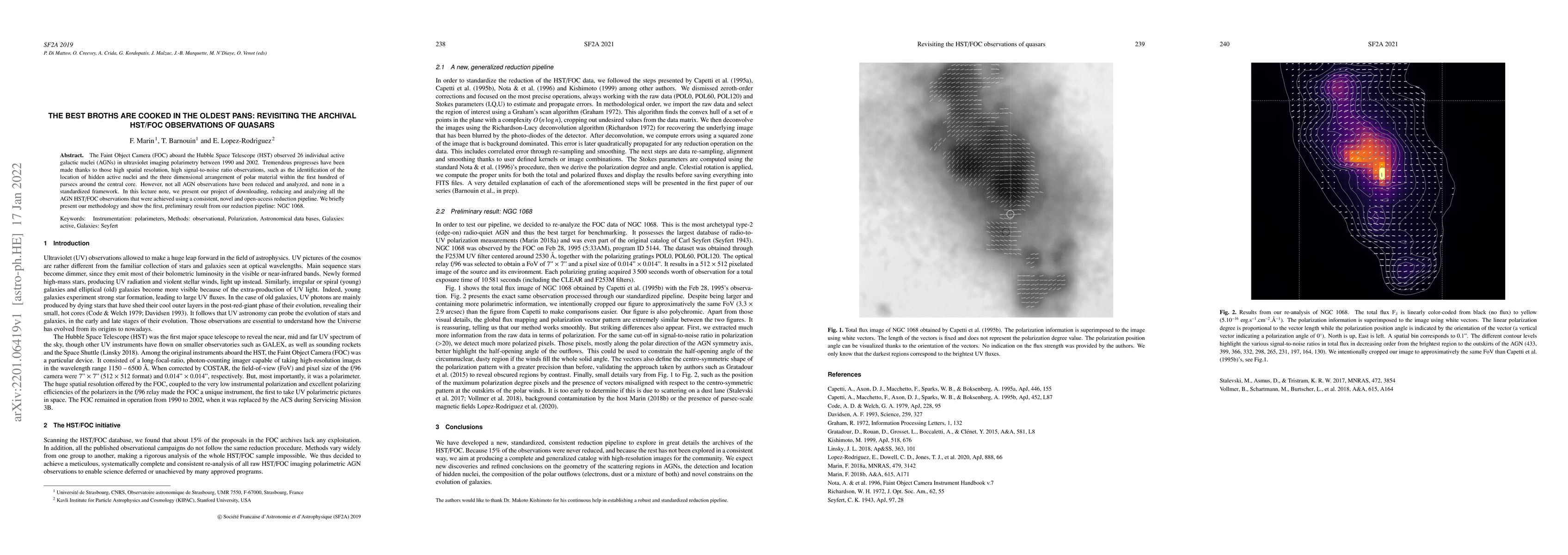 Researchers have analyzed archival Hubble Space Telescope observations of quasars using a new reduction pipeline, revealing new insights into their structure and behavior. The study presents the first results from this effort, focusing on the ultraviolet imaging polarimetry of NGC 1068.