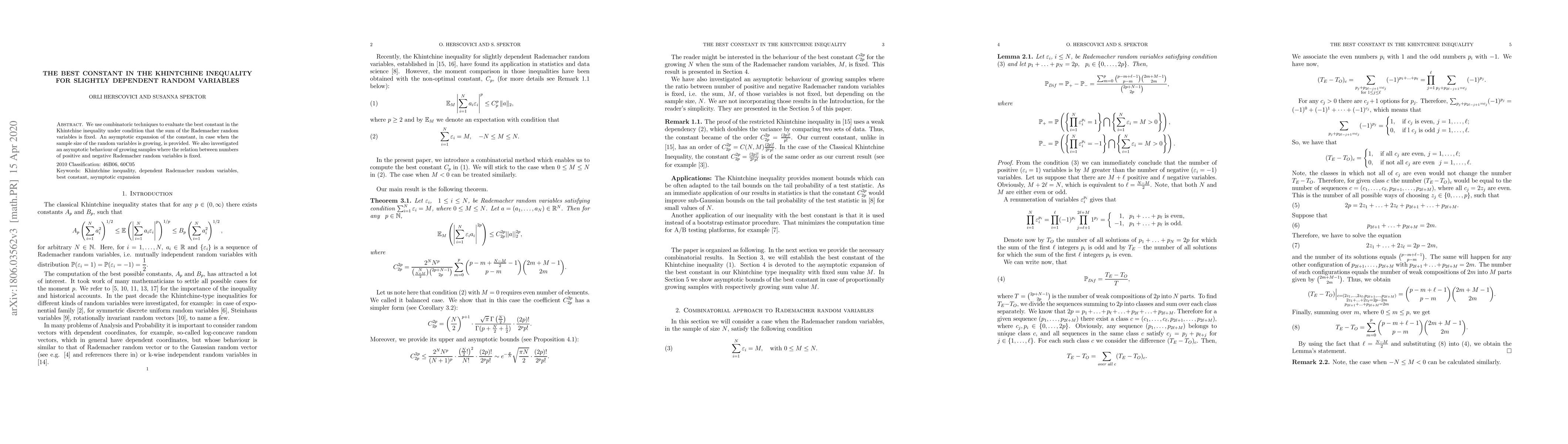 We compute the best constant in the Khintchine inequality under assumption that the sum of Rademacher random variables is zero.