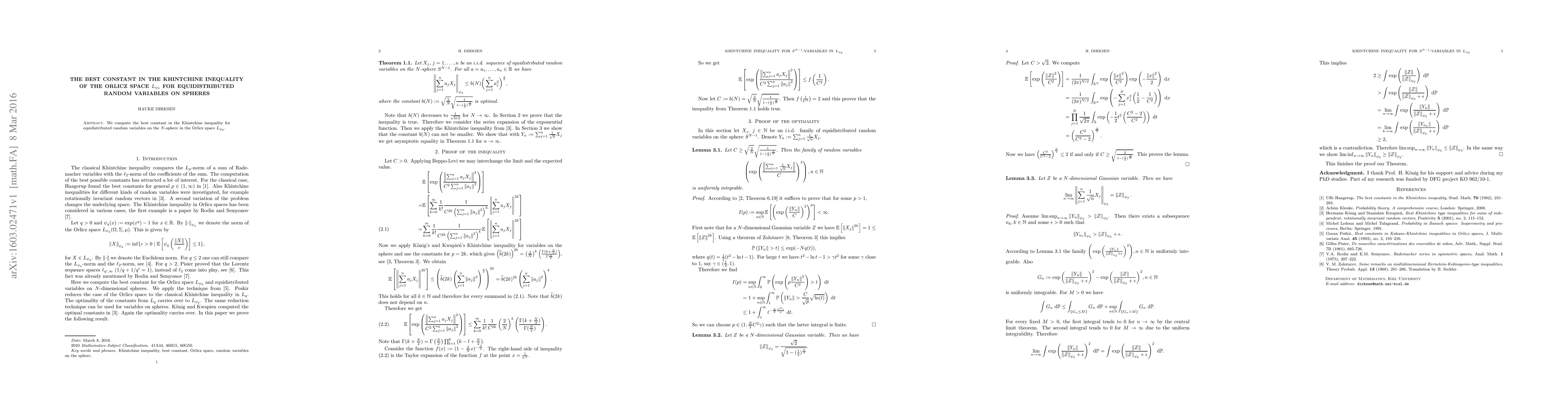 This research computes the best constant in the Khintchine inequality for equidistributed random variables on spheres in Orlicz space $L_{ ho_2}$. The findings provide a precise bound for this problem, contributing to our understanding of the behavior of these variables.