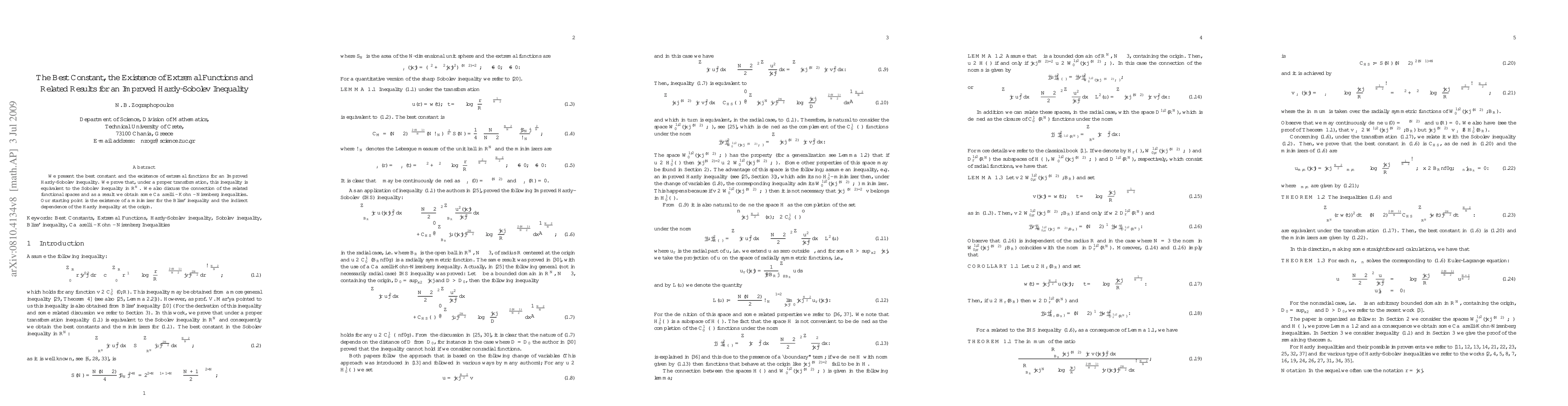 This paper identifies the best constant and extremal functions for an Improved Hardy-Sobolev inequality, demonstrating its equivalence to the Sobolev inequality in $\mathbb{R}^N$ under a specific transformation. It also explores related functional spaces and derives Caffarelli-Kohn-Nirenberg inequalities, grounded in the existence of a minimizer for Bliss' inequality.